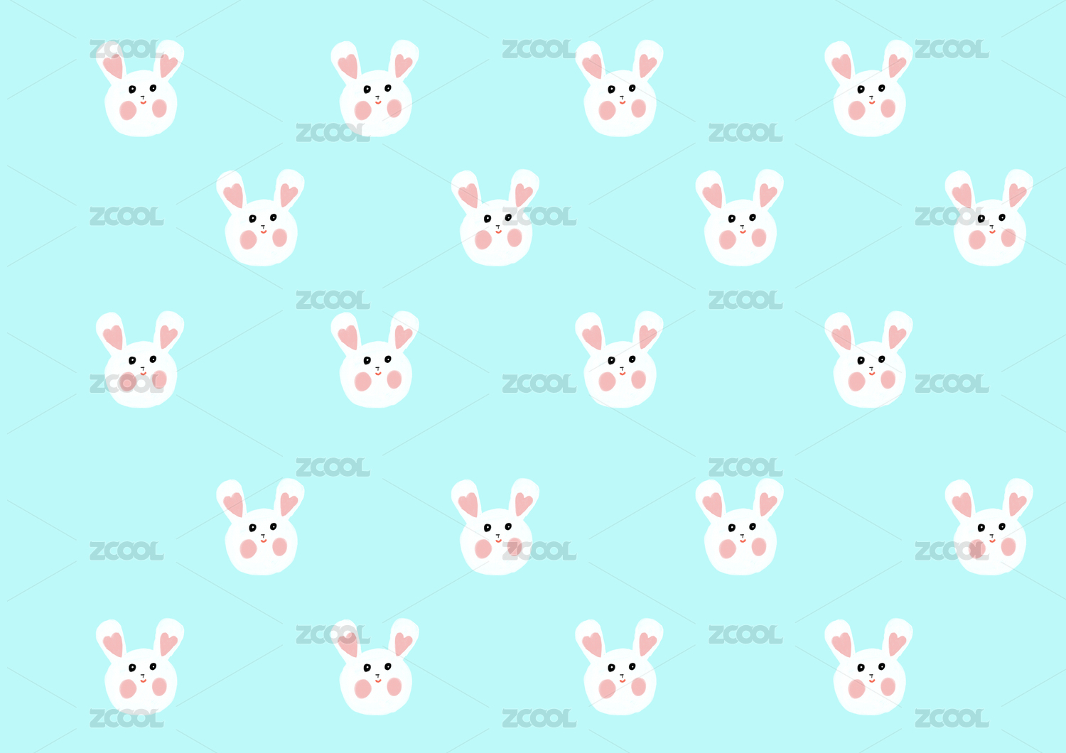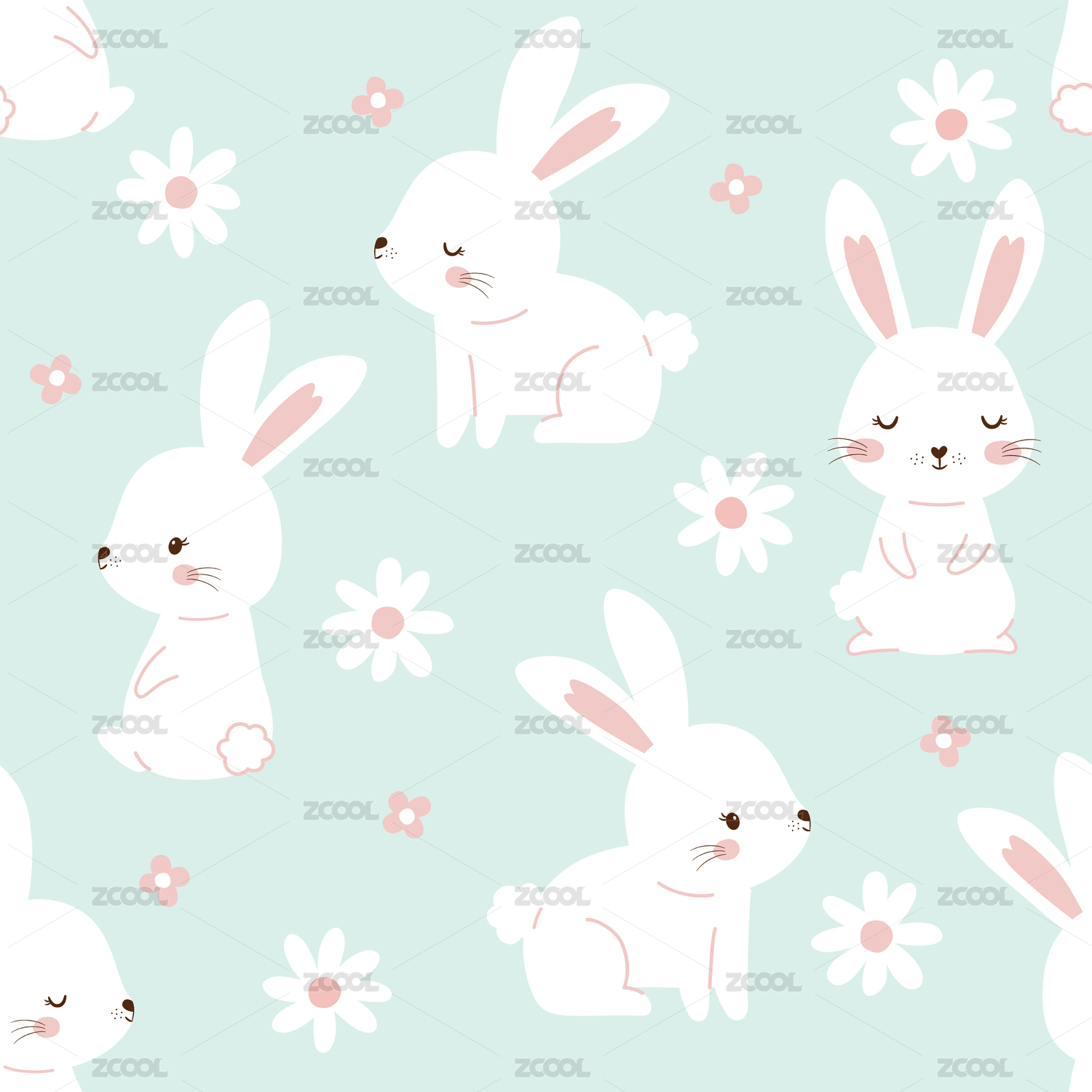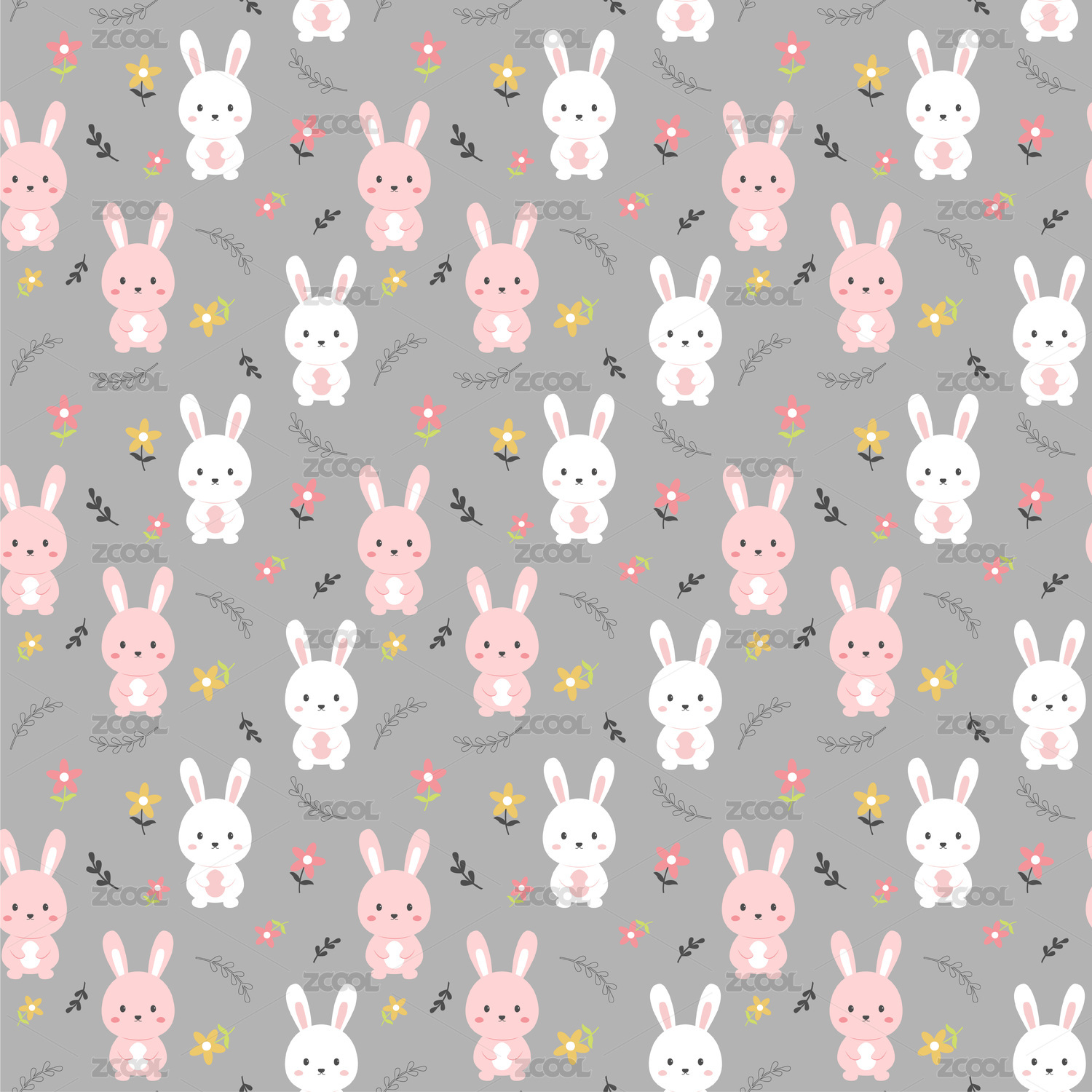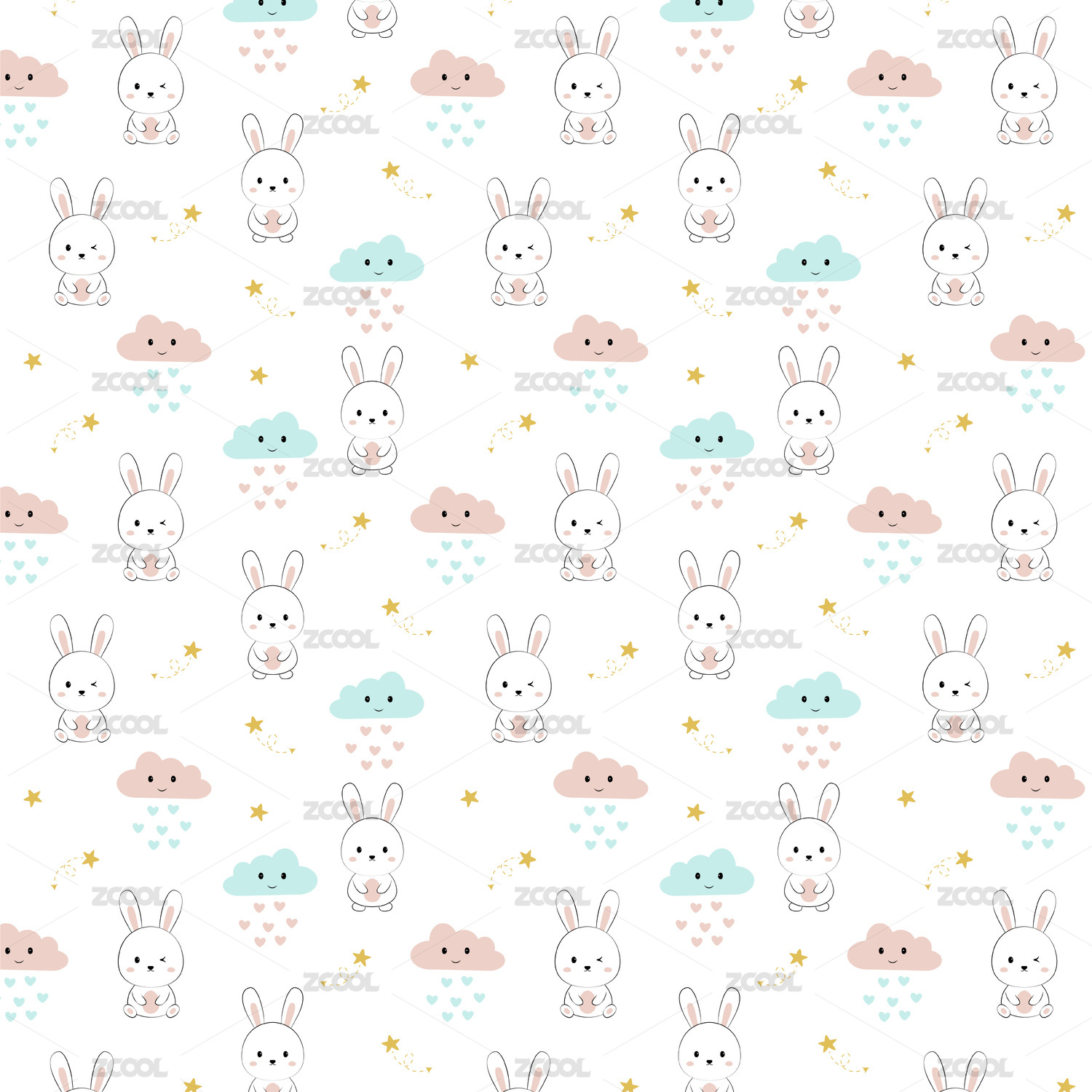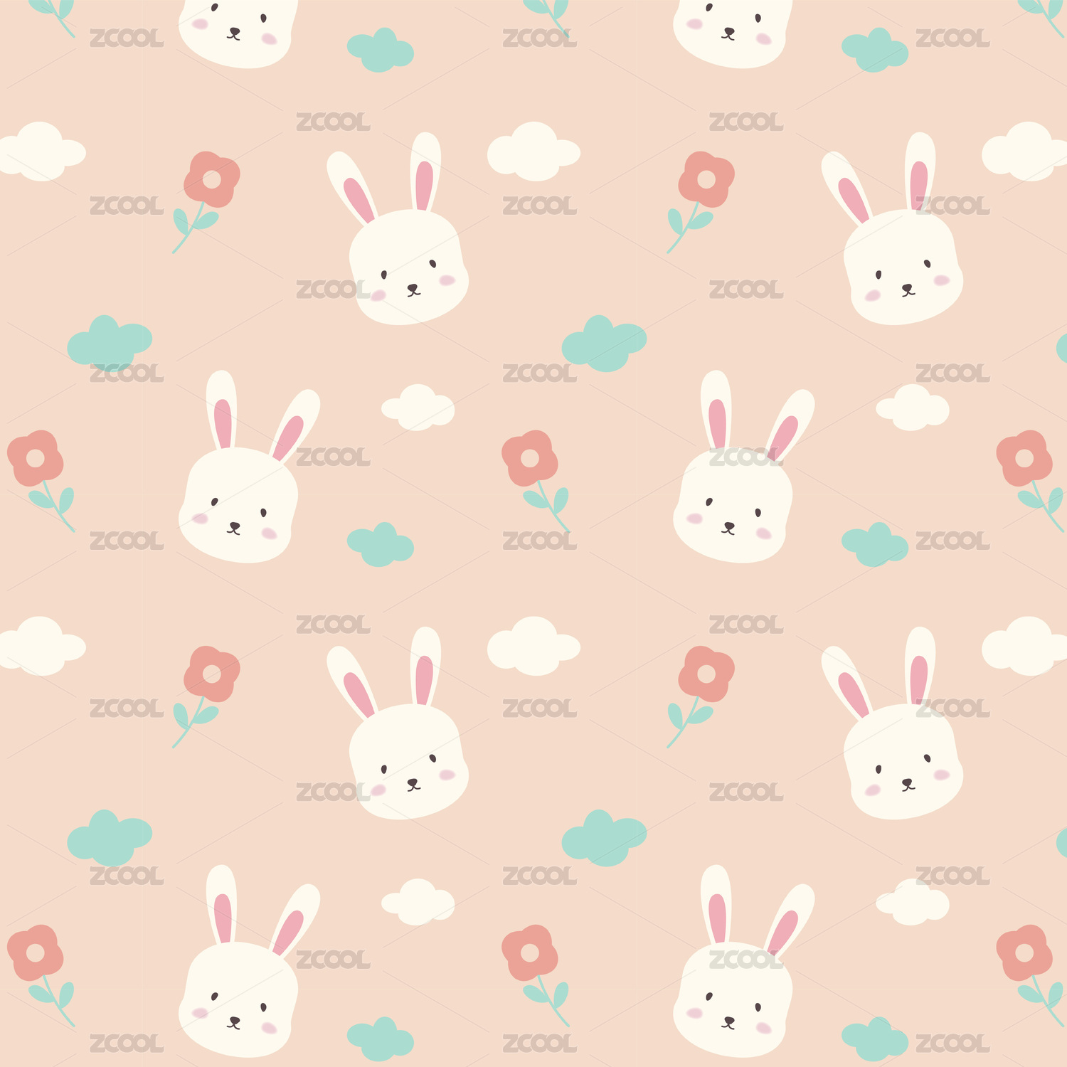 粉色底可爱爱心小兔子矢量插画无缝壁纸背景