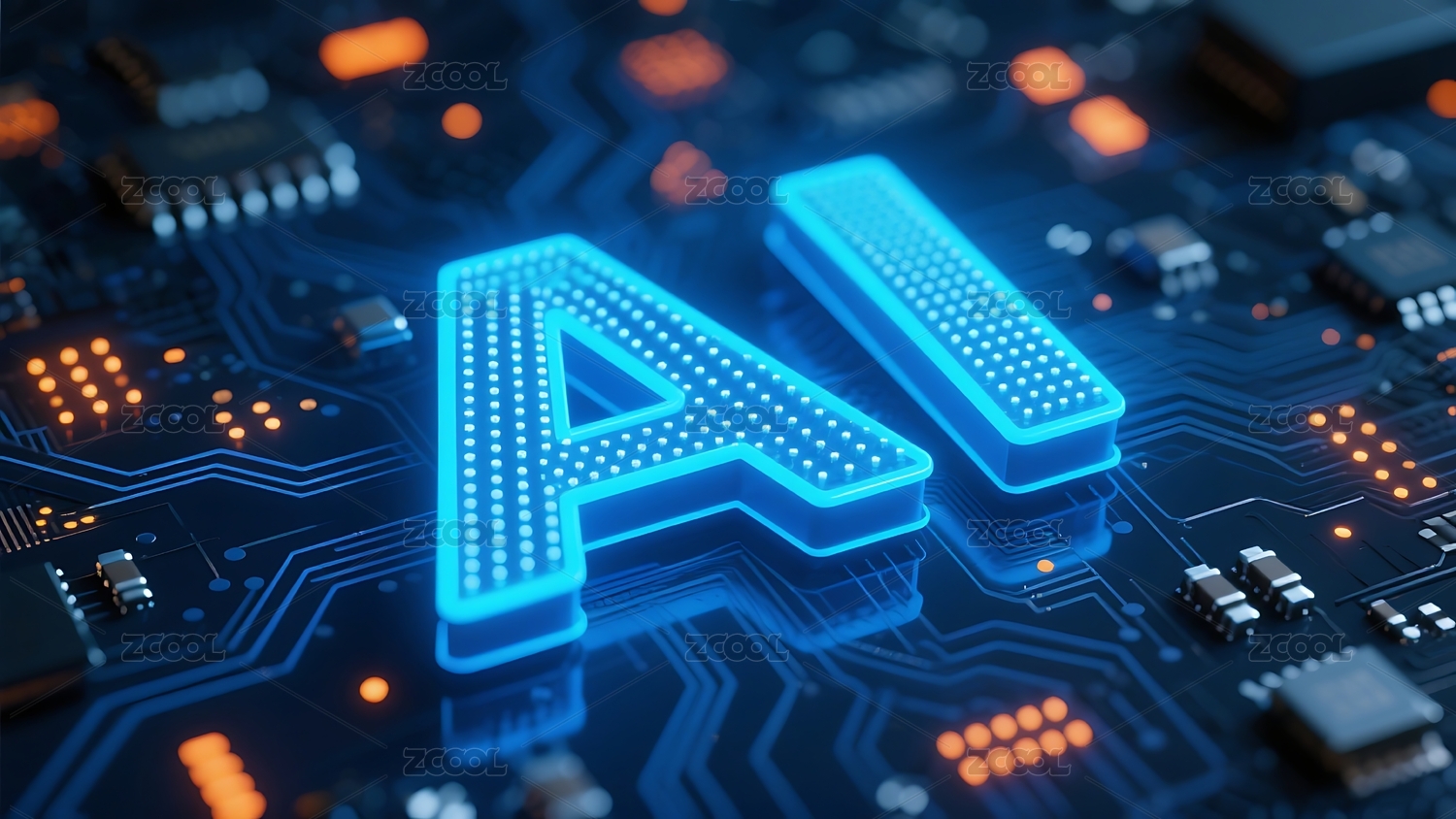 AI字母置于电路板上科技感十足