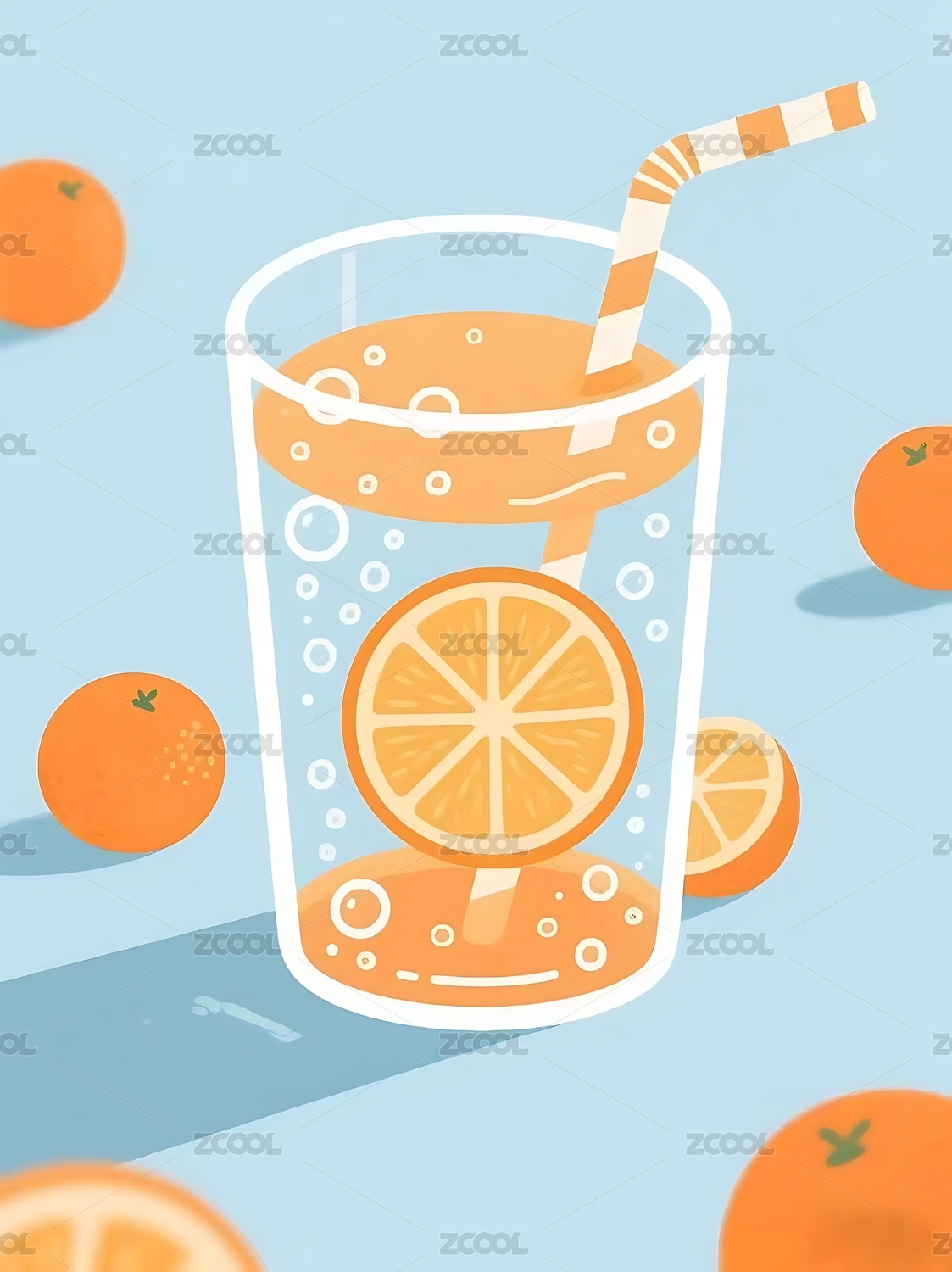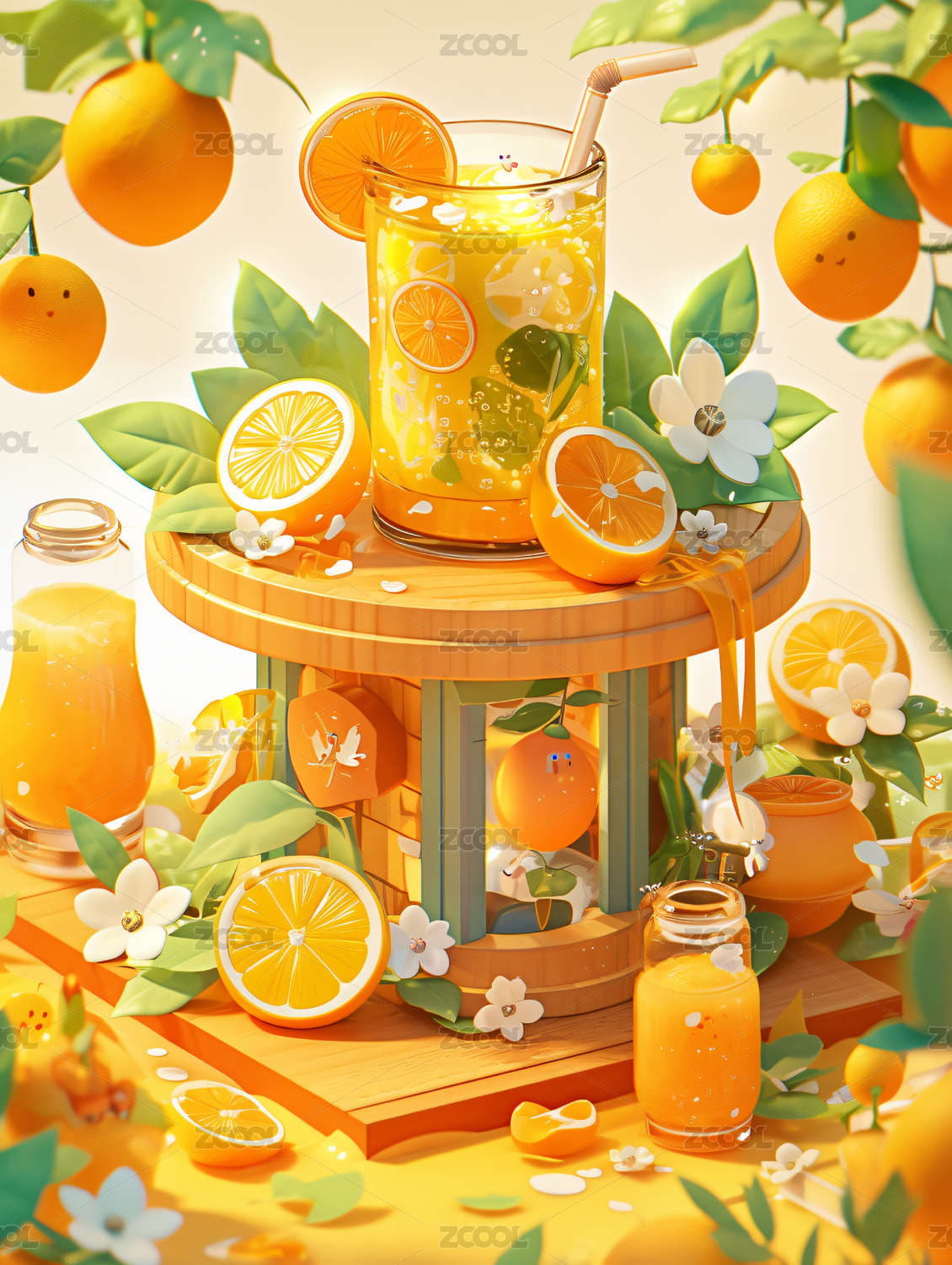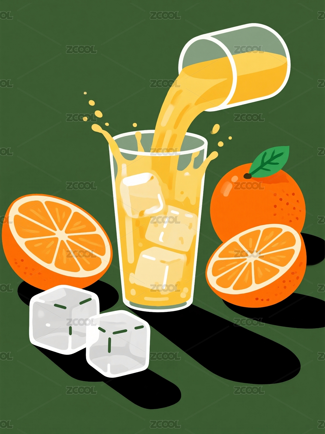 一杯橙汁 橙子被挤出大量的橙汁 新鲜美味
