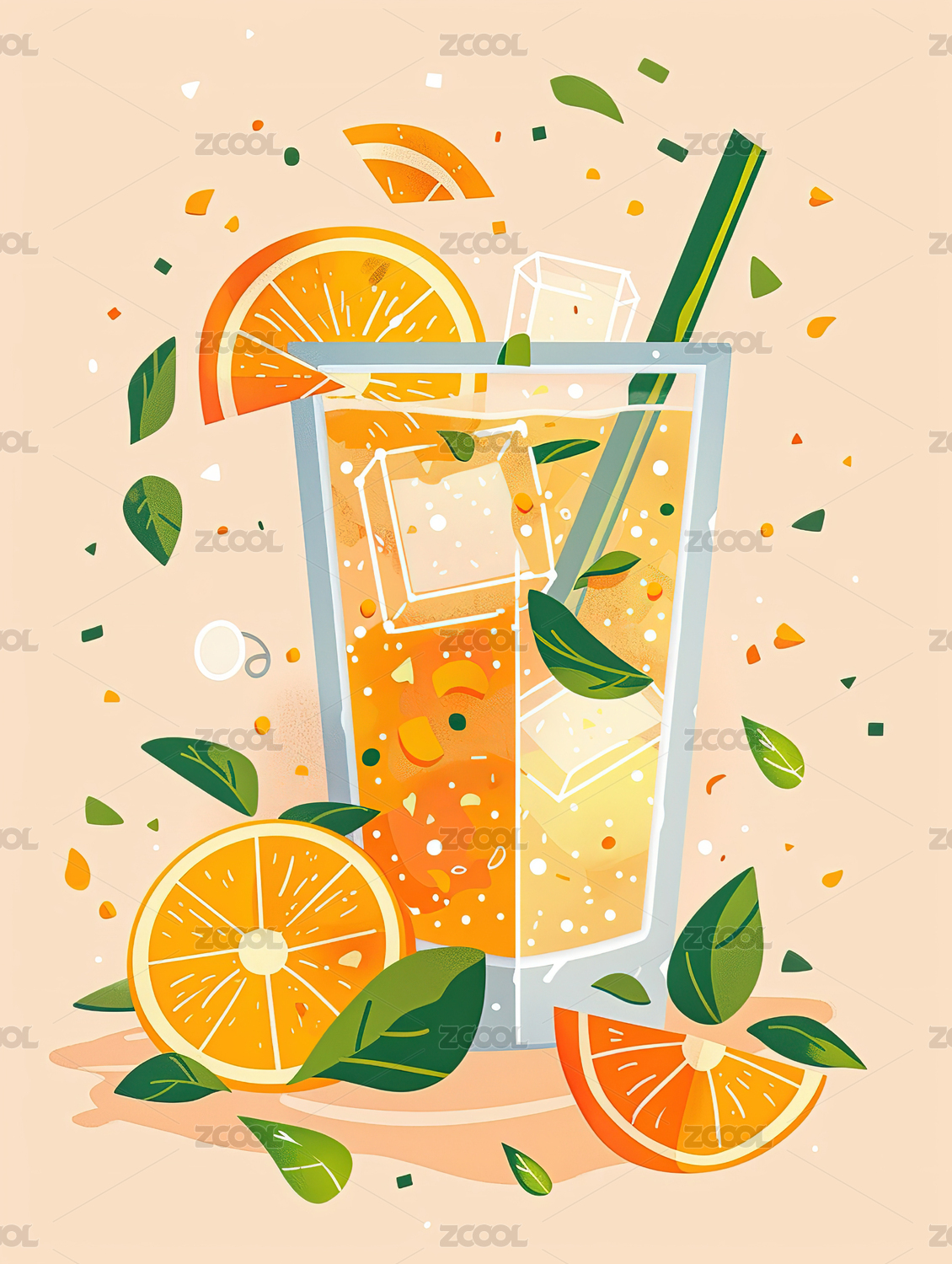 夏天水果茶饮美食插画立夏节气美食解暑海报