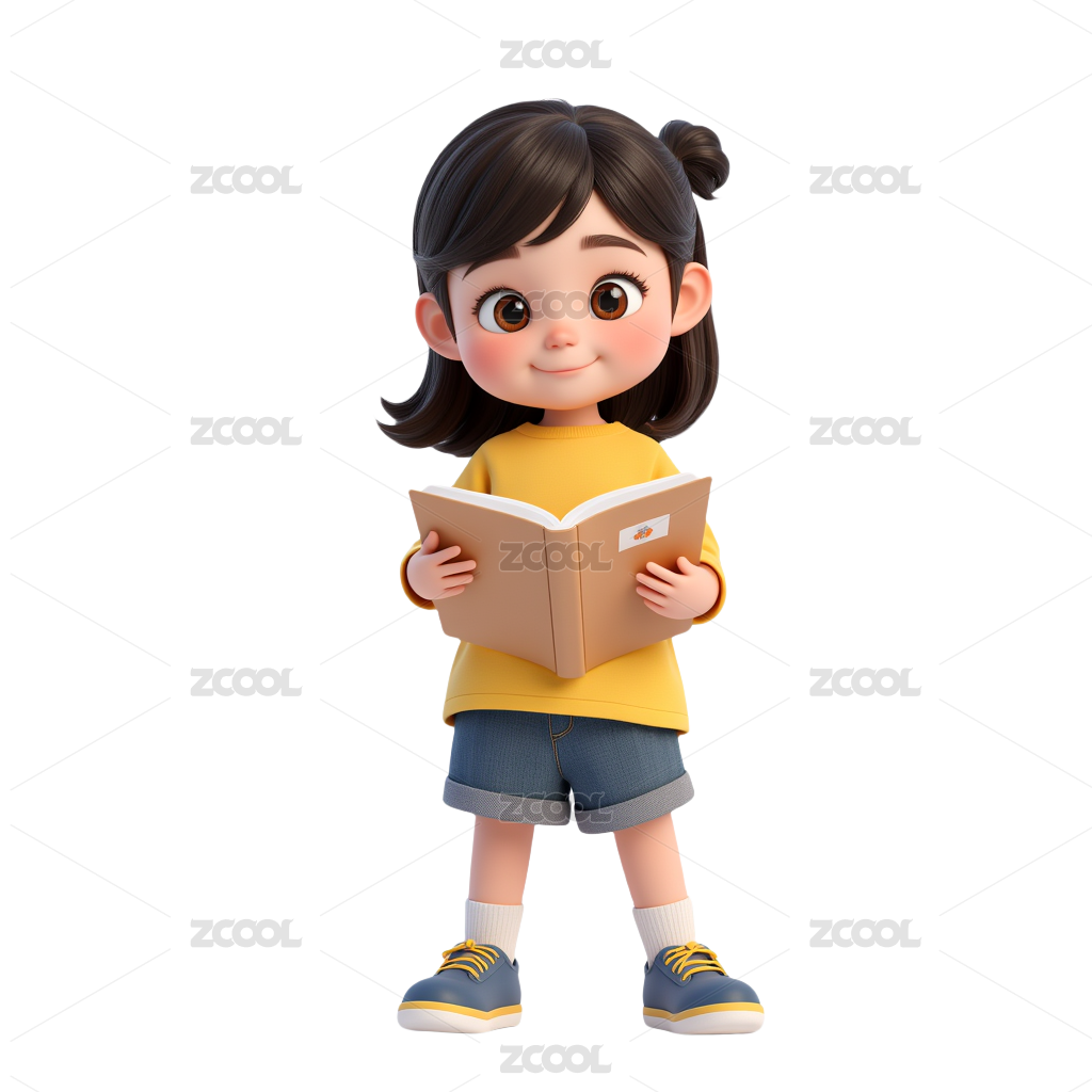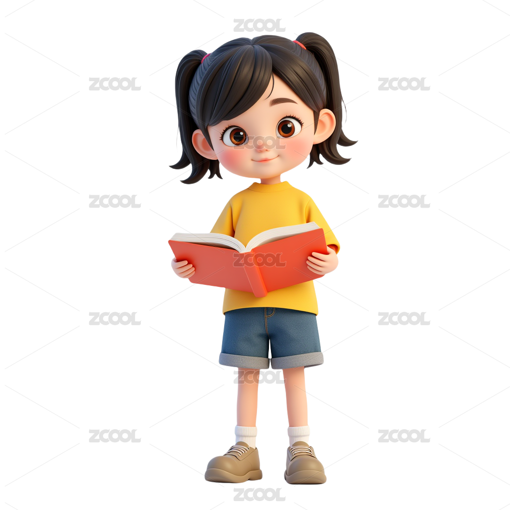 女孩,卡通,三维图形,3D,读书,书,阅读,可爱,插画,人