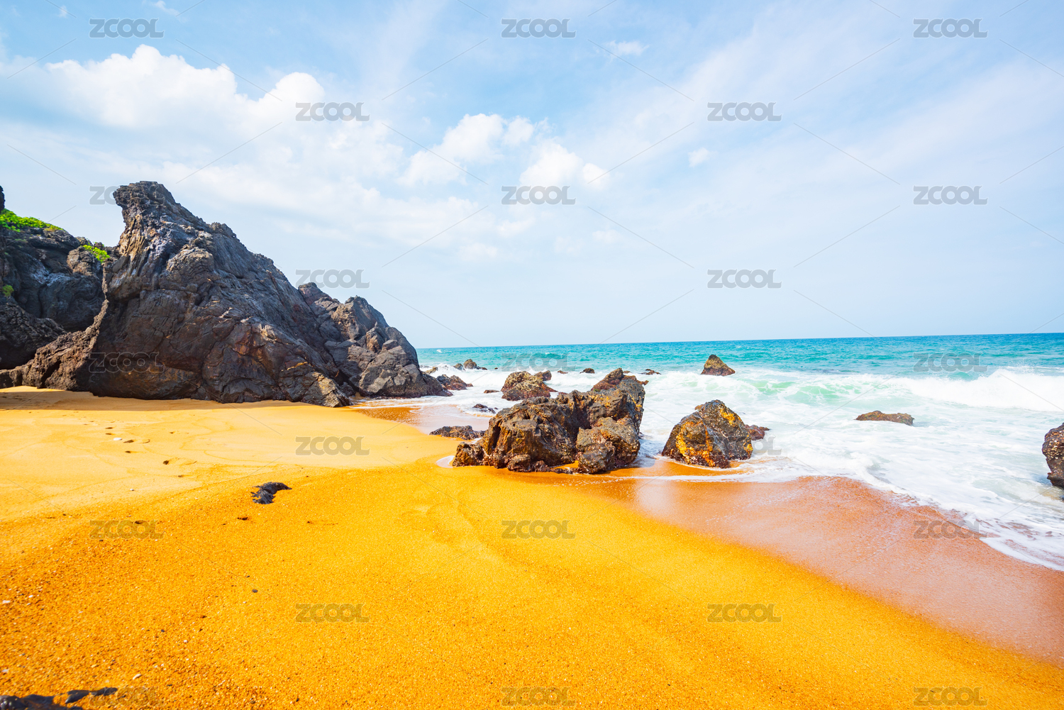 海南,万宁,山钦湾燕子洞,夏天,黑色礁石,海滩,沙滩,海岸,金黄,黄色