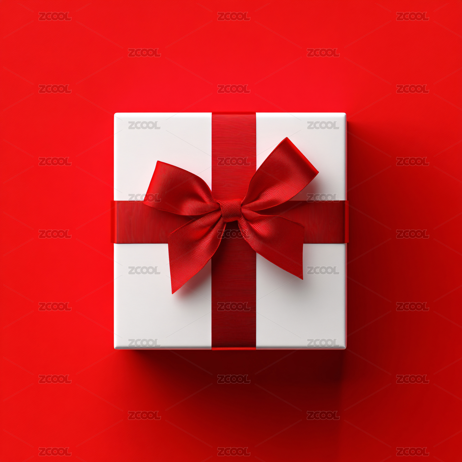 放在红色背景的绑着香槟色带子的中国红礼物盒