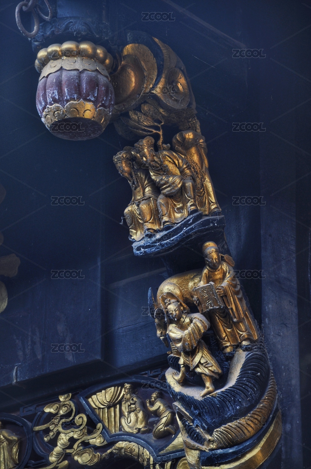 中国古典建筑家具木雕人物图案特写