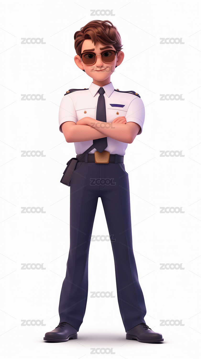 戴墨镜的3d卡通的飞行员机长人物卡通形象