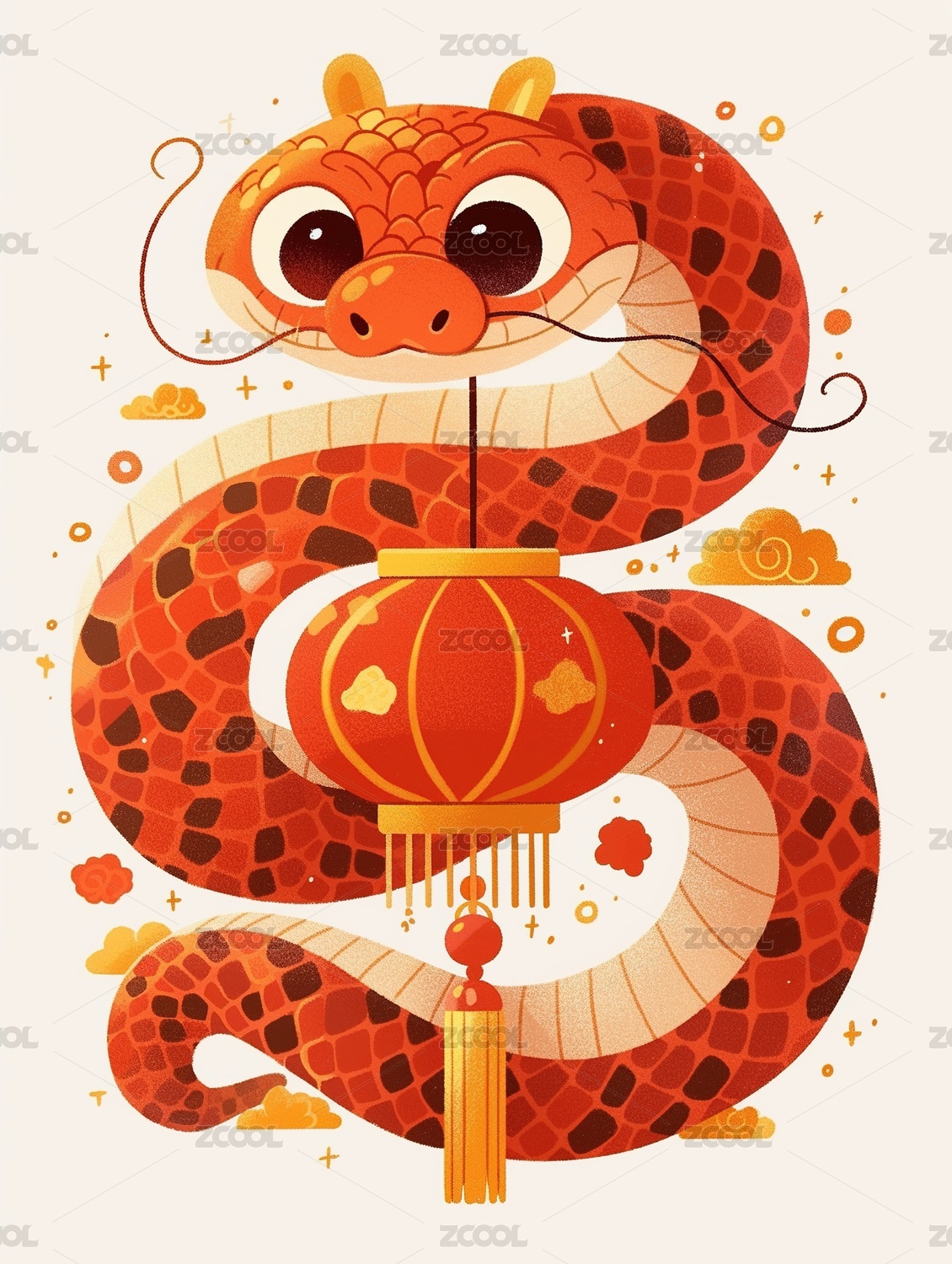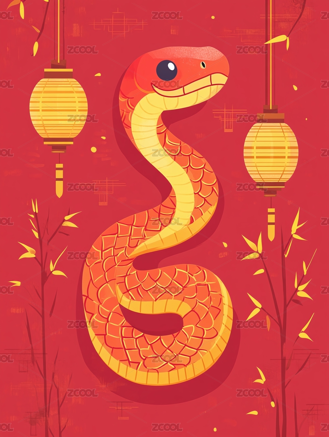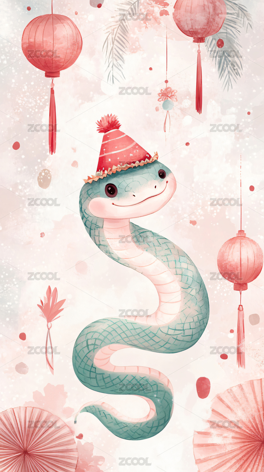 AIGCTP2024,蛇,花朵,花丛,爬行,动物,可爱,卡通,插画,艺术