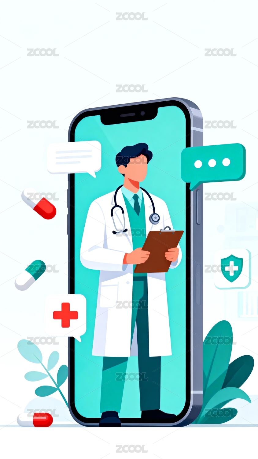 卡通手绘医疗男子体检问诊蓝色海报闪屏插画
