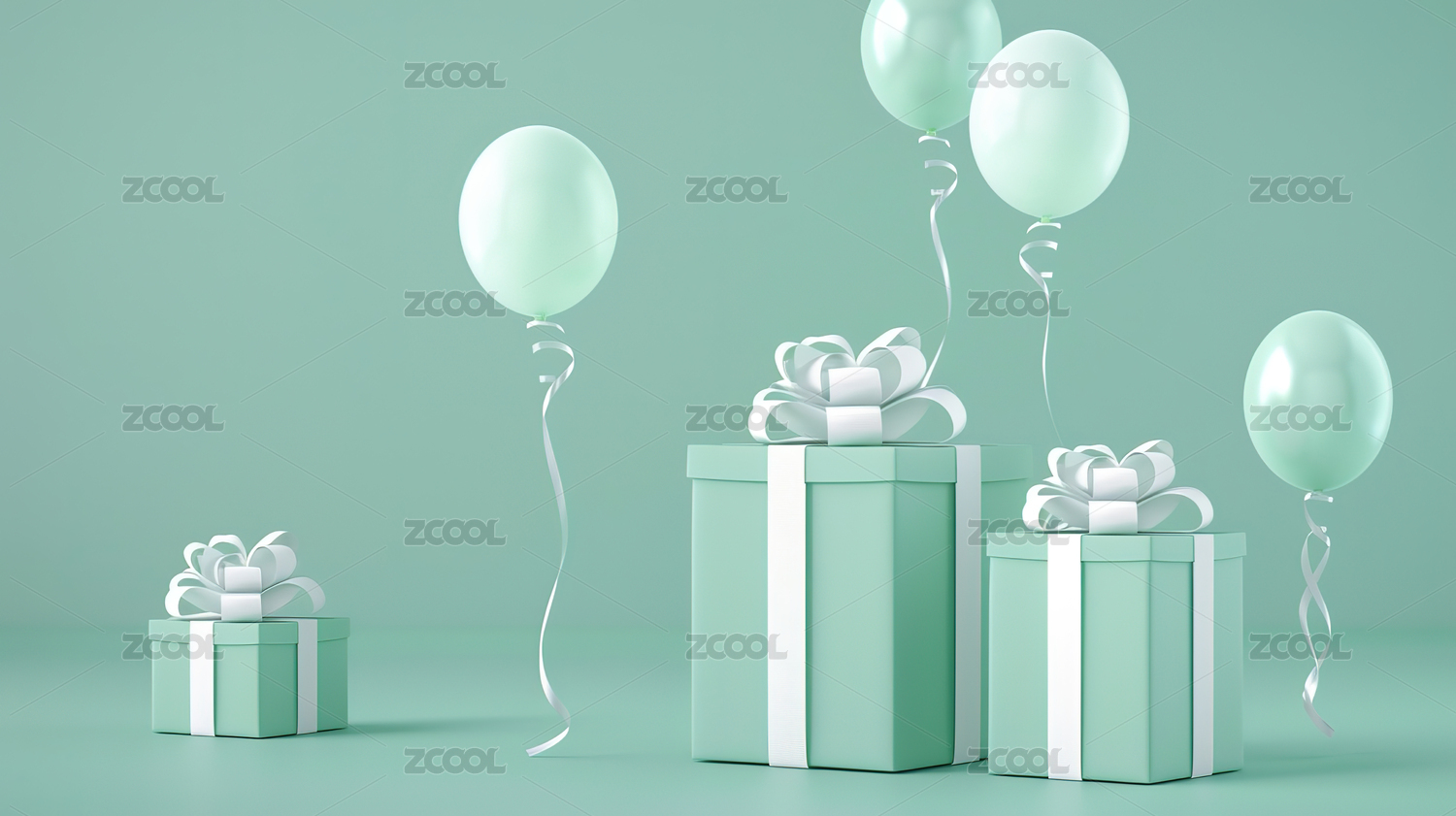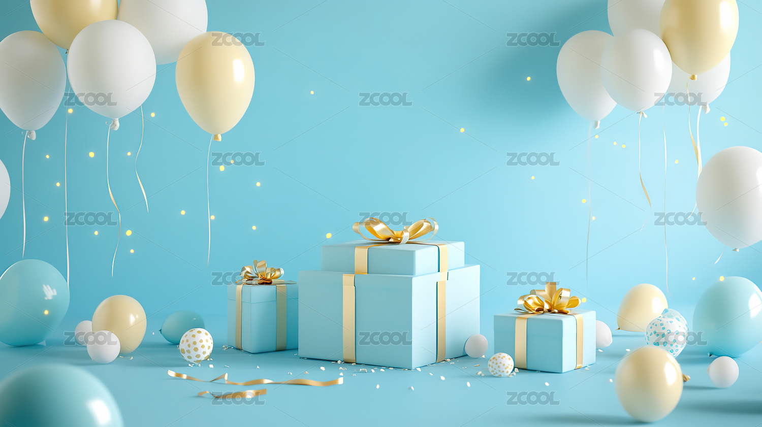 蓝色背景下的圣诞礼物和气球的特写镜头