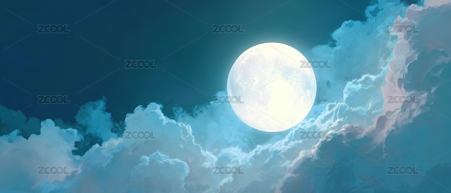 AIGC202403,中秋节,月亮,插画,祥云,节日