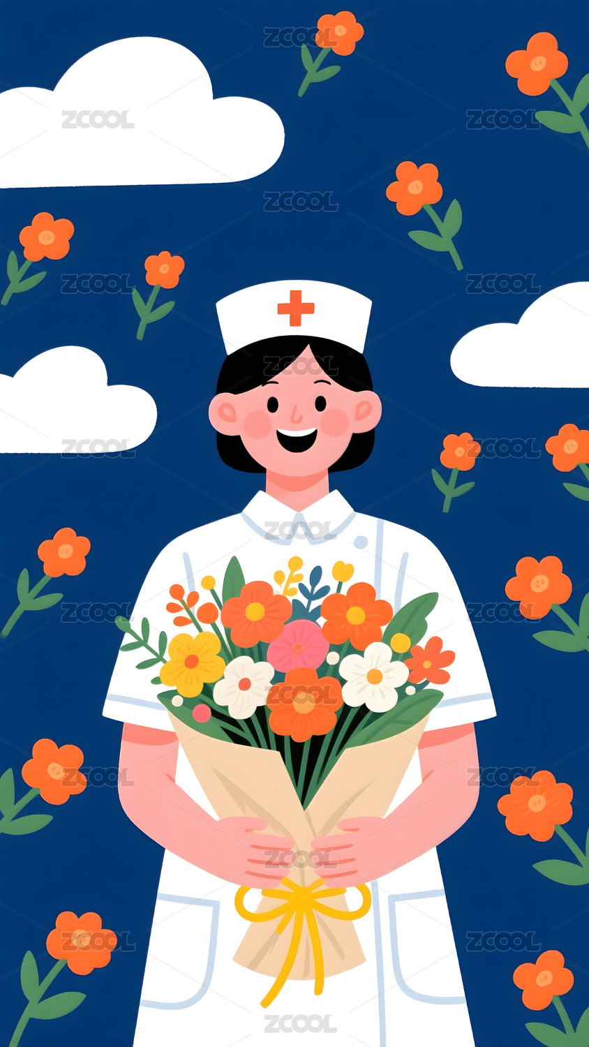 鲜花,花束,护士,医生,卡通,插画,花,护士节