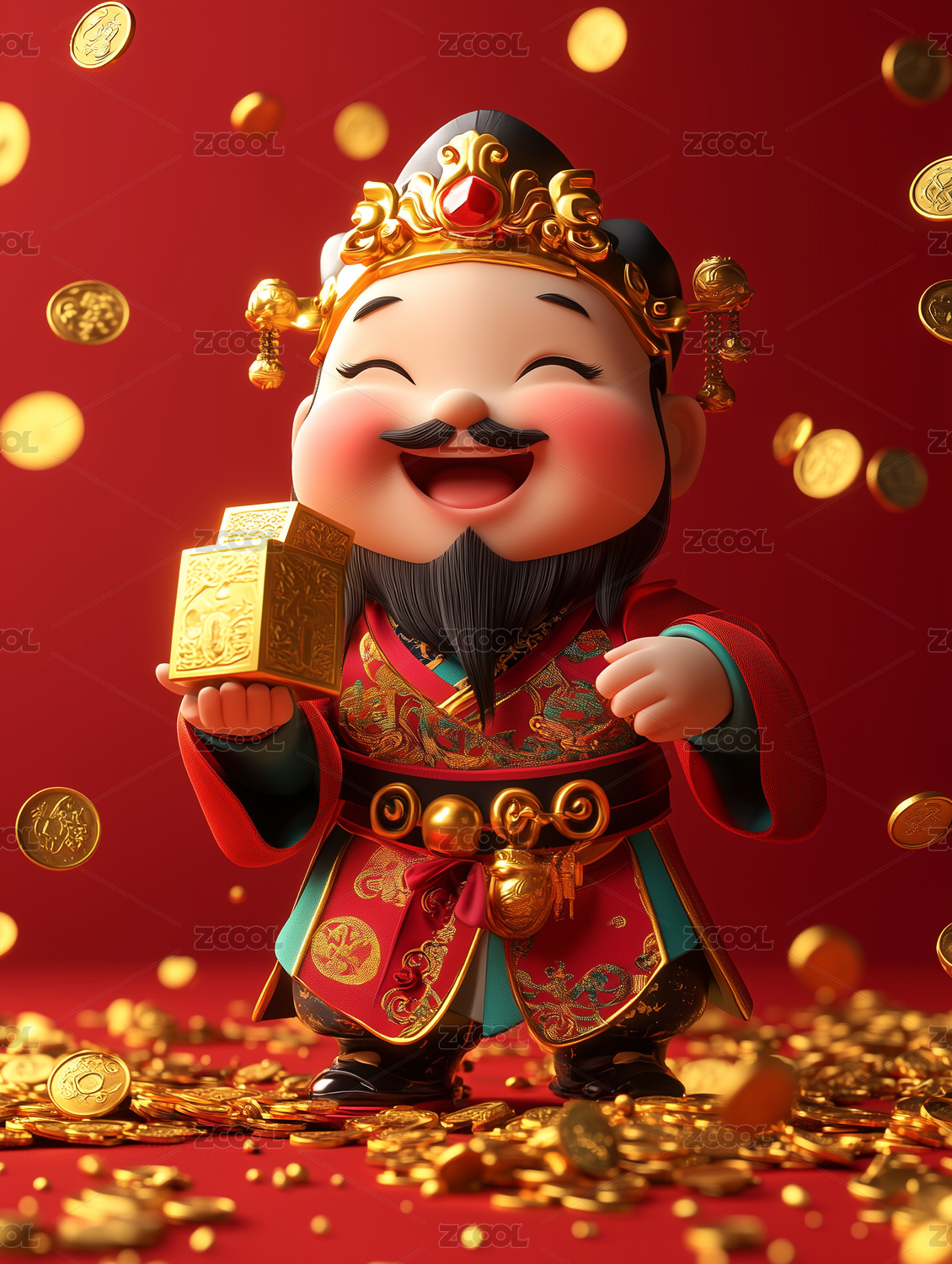 3D,春节,节日,新年,财神,财神爷,金子,财富