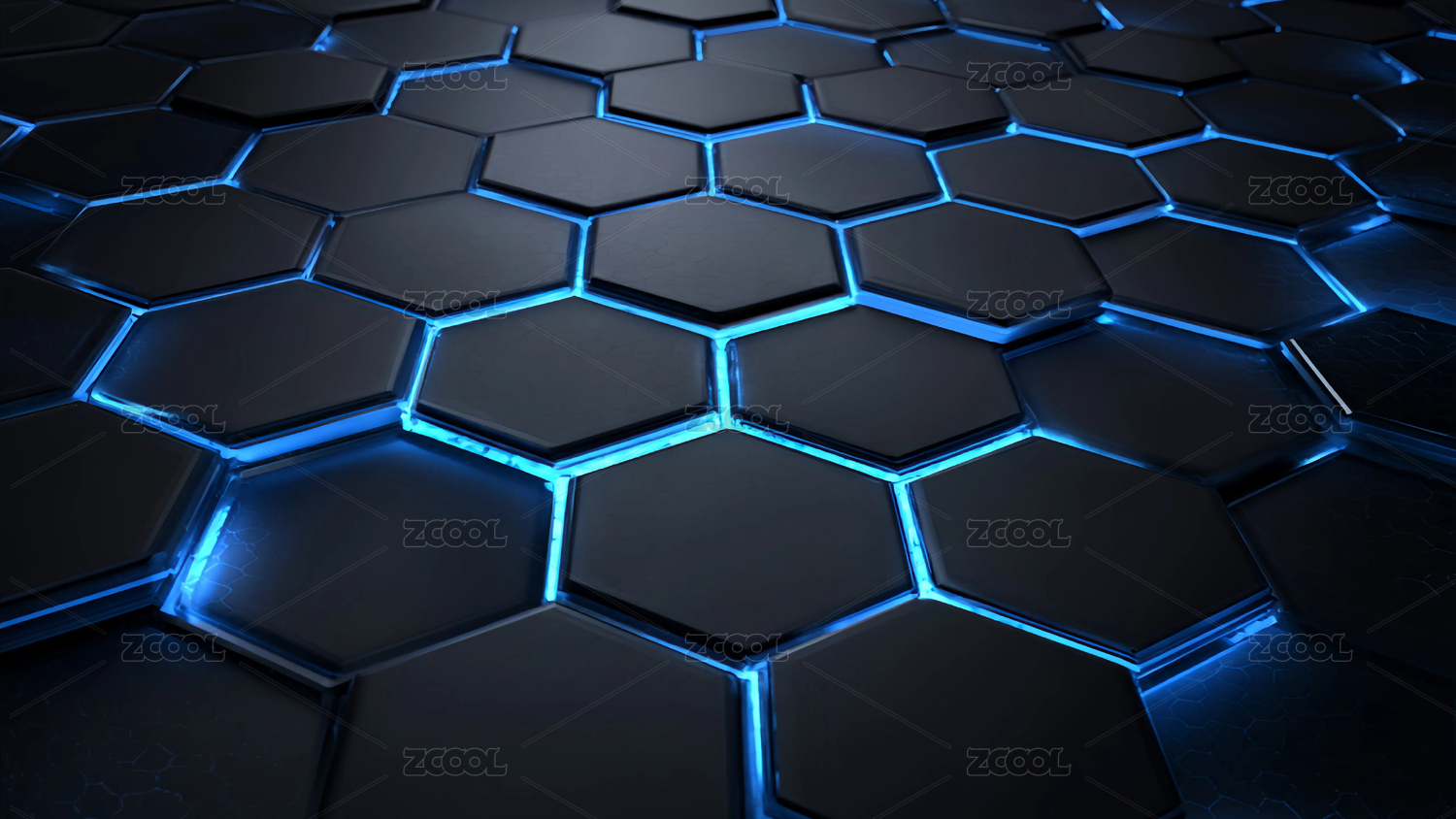 蓝色发光六边形网格图案