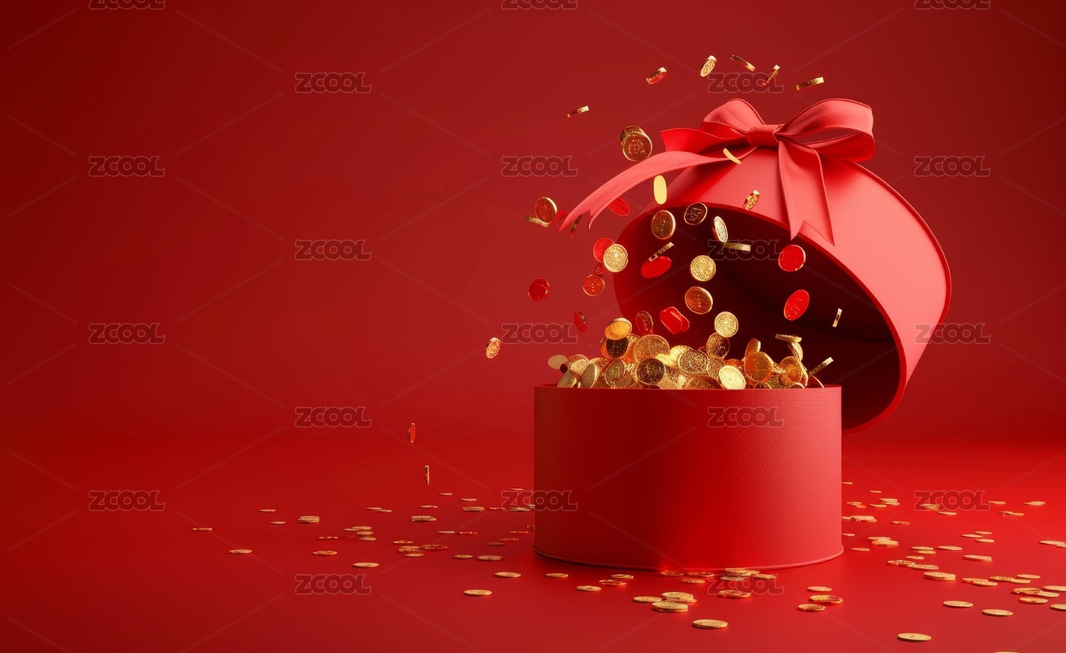 红色袋子中金币飞溅