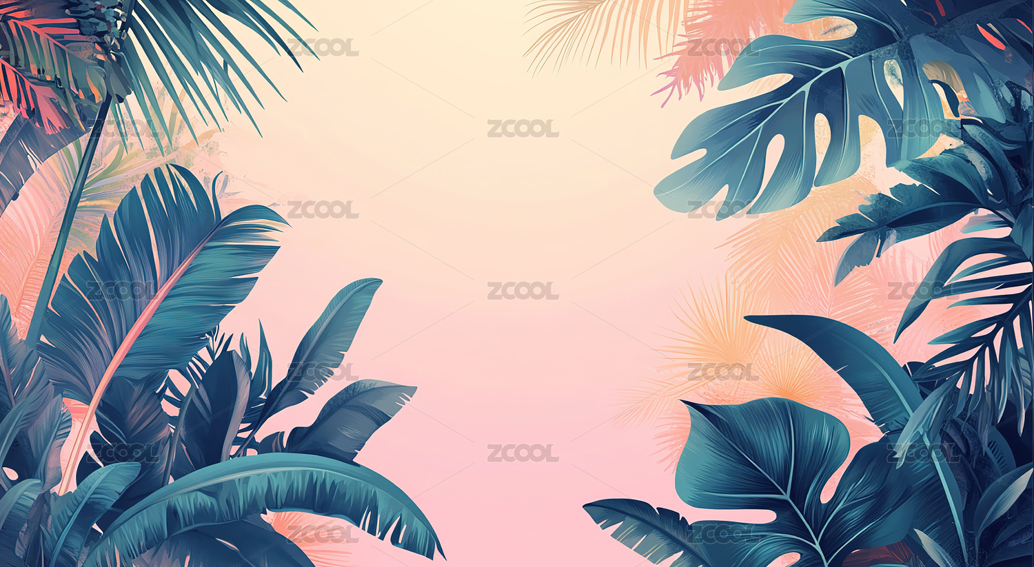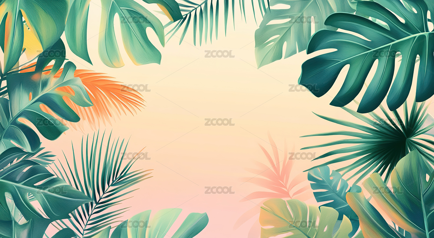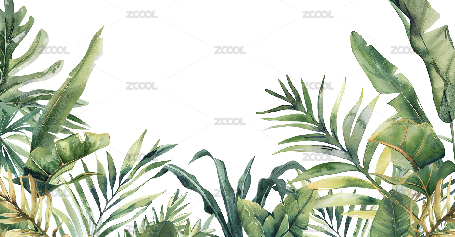 手绘卡通唯美的热带树叶插画背景