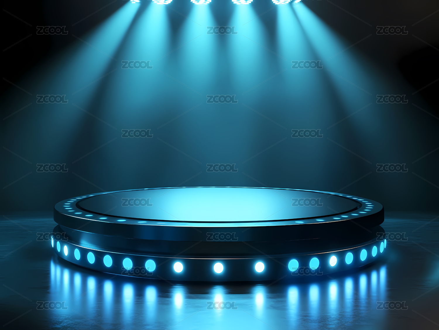 蓝色背景下桌子上的蓝色灯光特写镜头