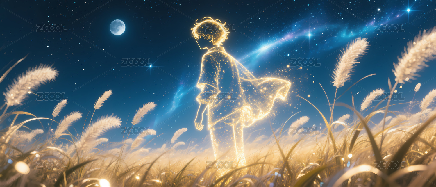 月下金光少女立于草丛
