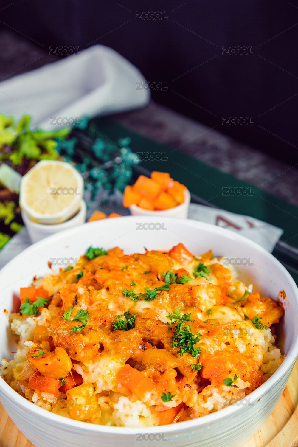 西式简餐柠檬烤鸡胡萝卜焗饭