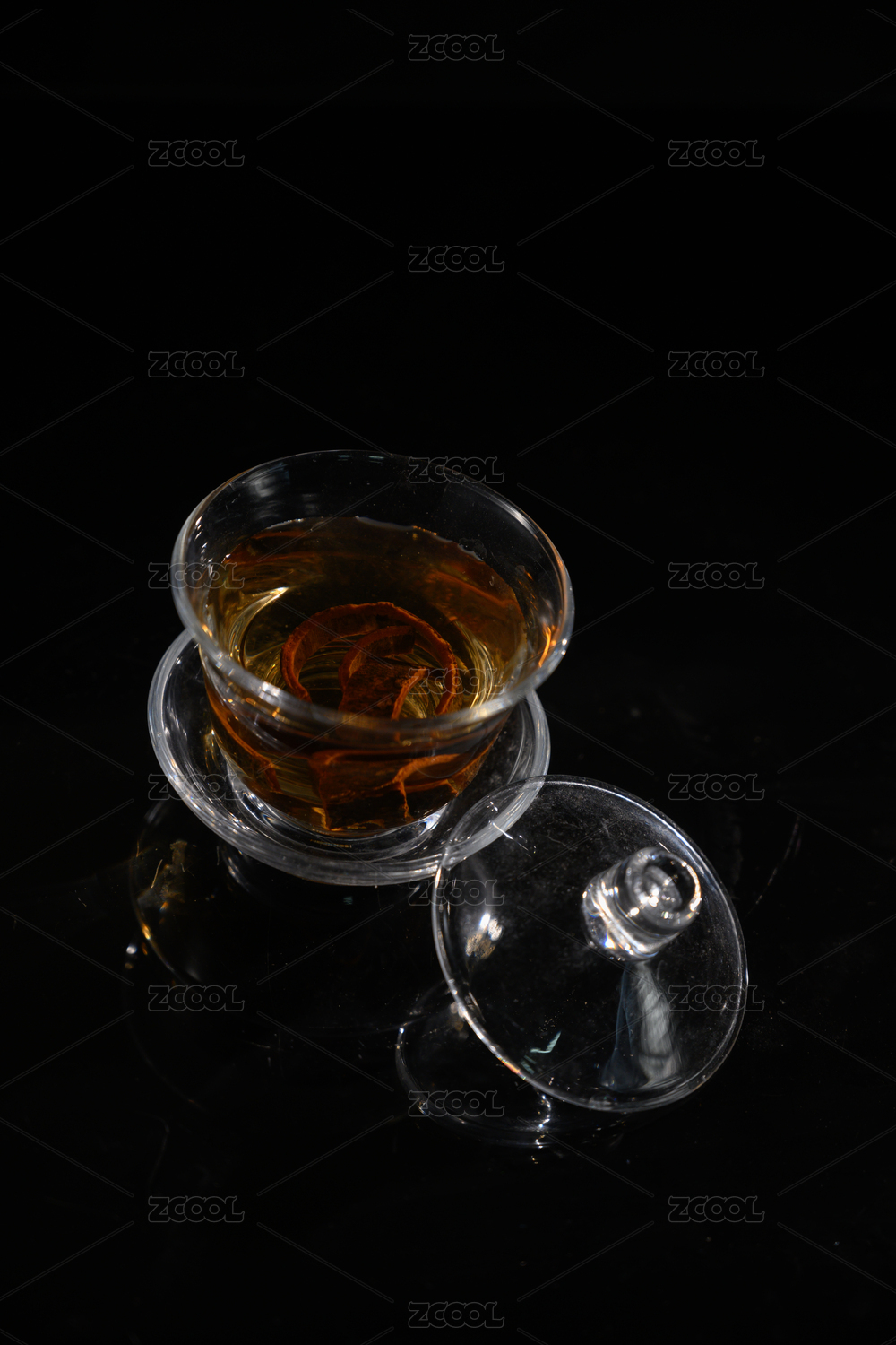 木盘上的玻璃茶杯