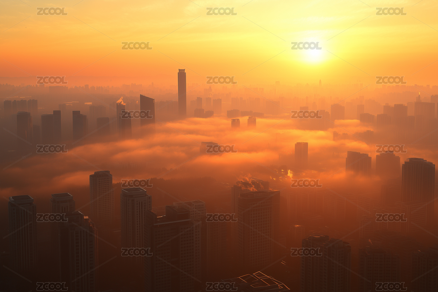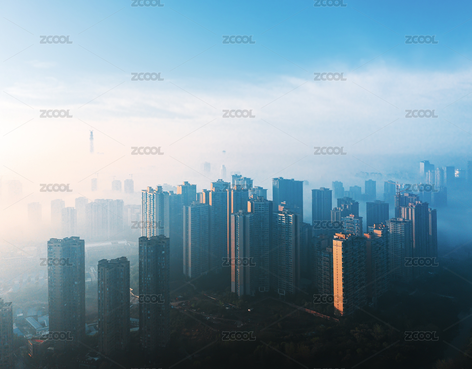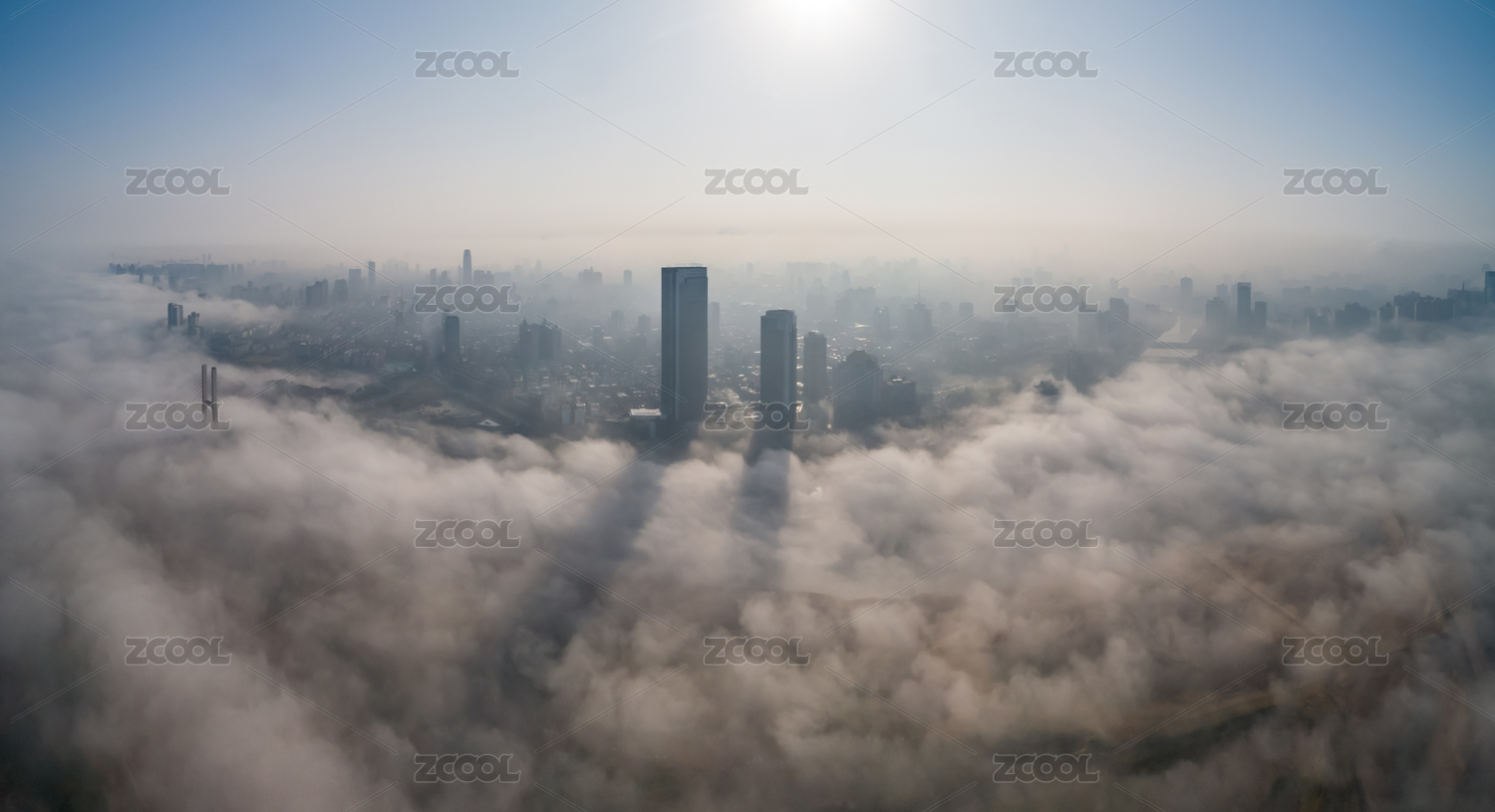 天津滨海新区,城市,都市风光,城市天际线,平流雾,晨雾,清晨,于家堡金融区,摩天大楼