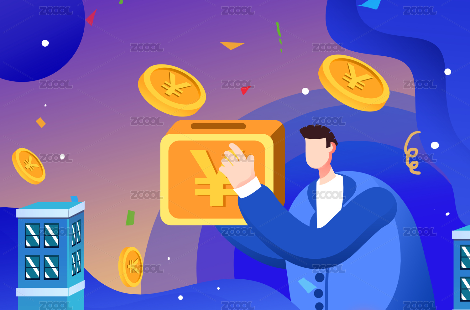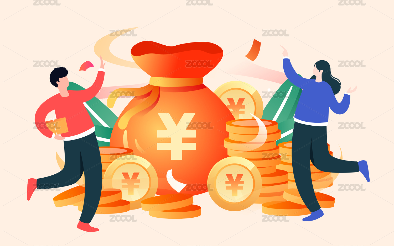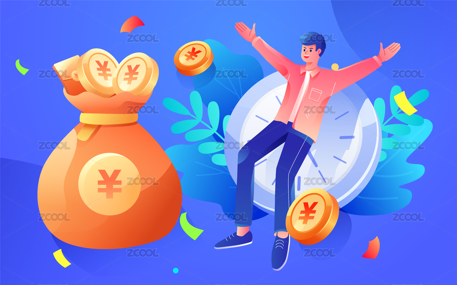 卡通人物快乐赚钱获取收益矢量插画背景素材
