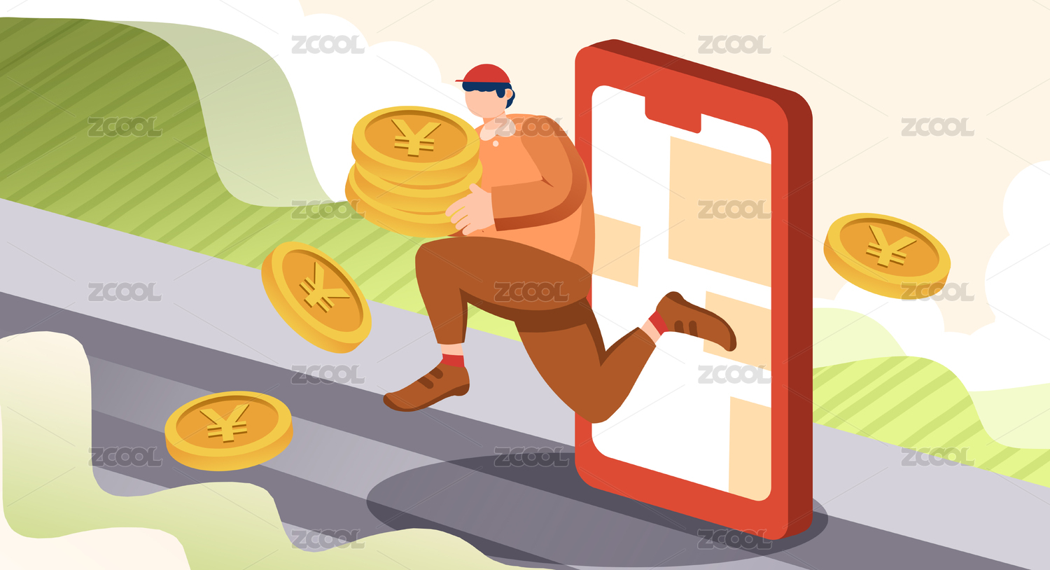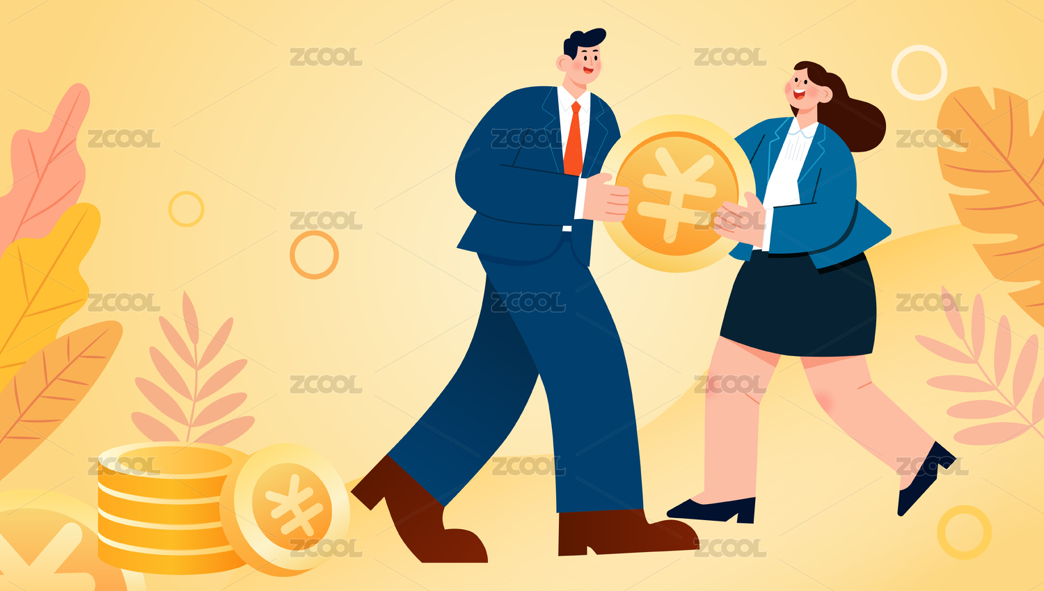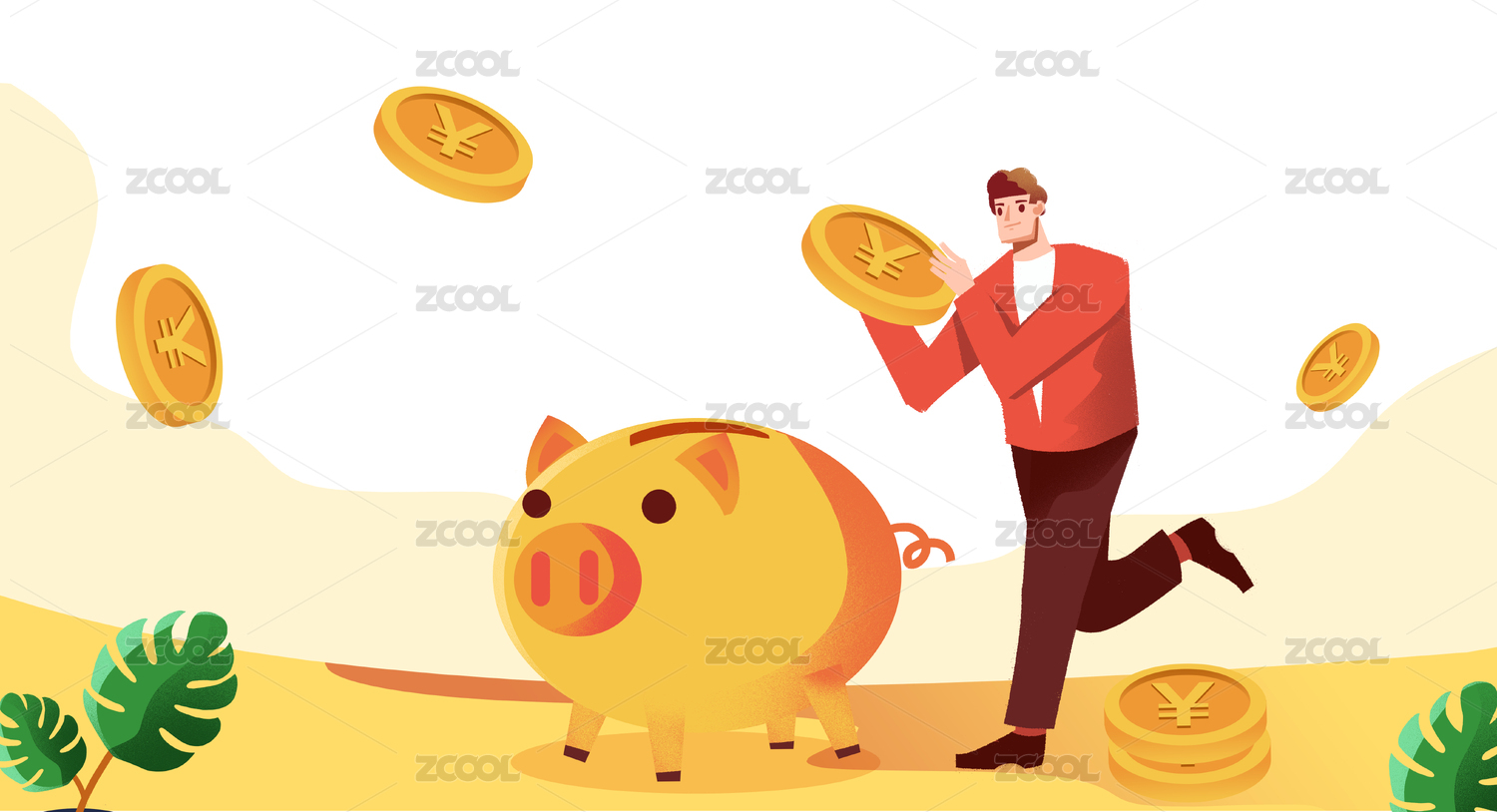 卡通人物快乐赚钱获取收益矢量插画背景素材