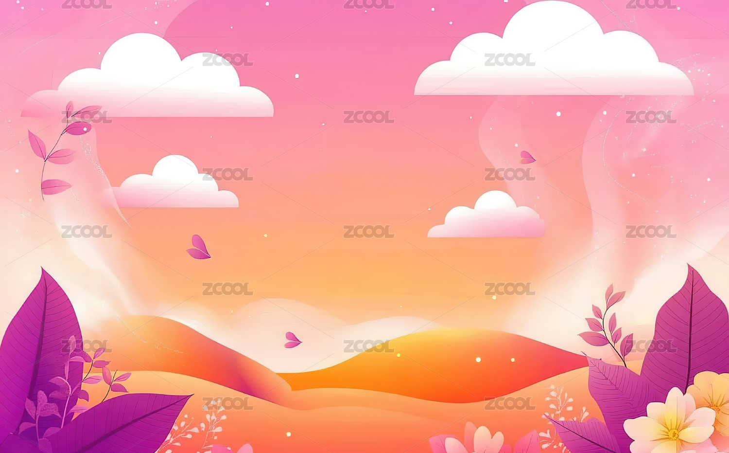 卡通清新粉色树林风景背景矢量插画