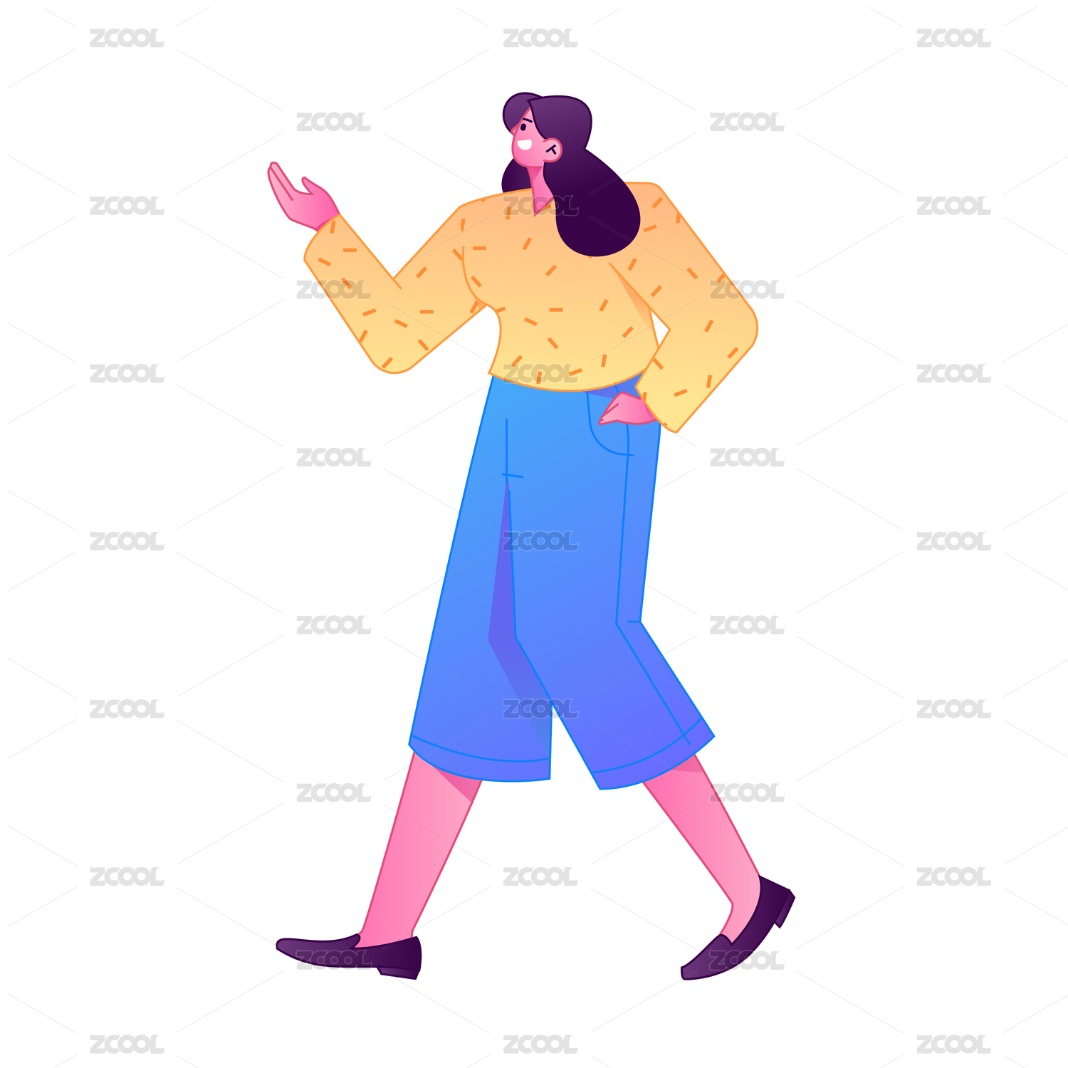 人物站姿肢体动作自信展示矢量扁平渐变插画