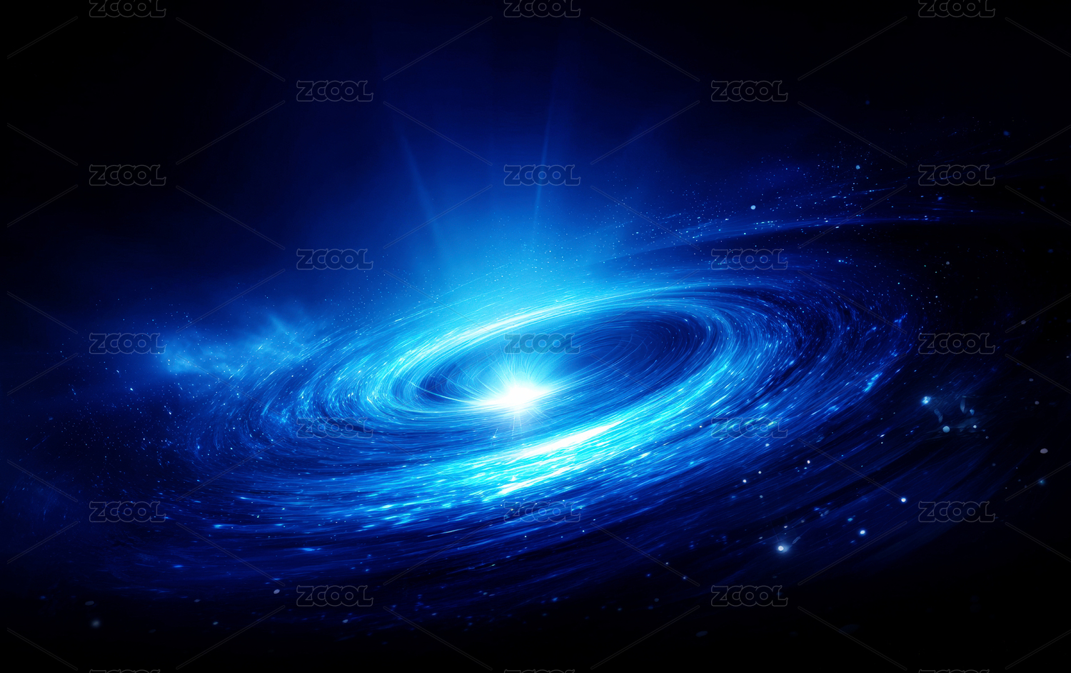 近距离拍摄的黑洞,旋转的白色光线蓝色星