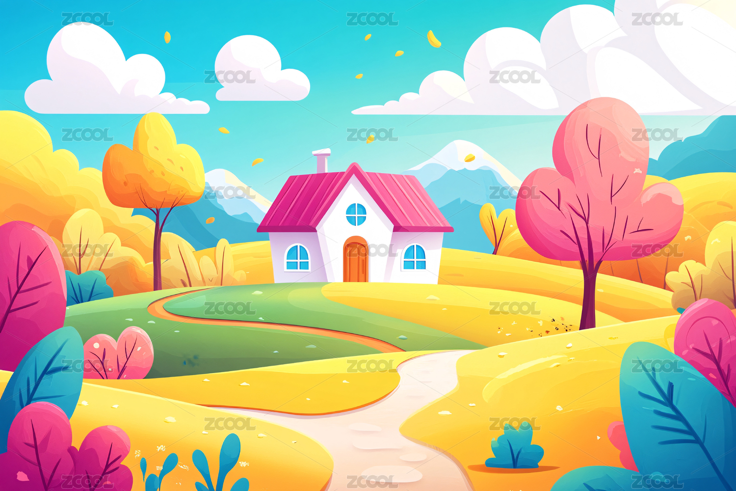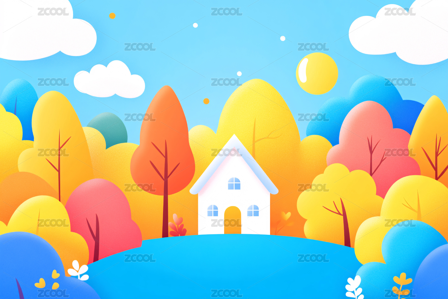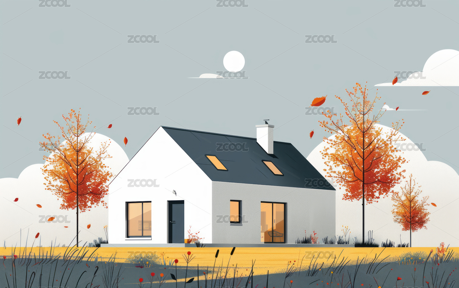 秋分节气户外房屋落叶处暑时节秋日场景插画