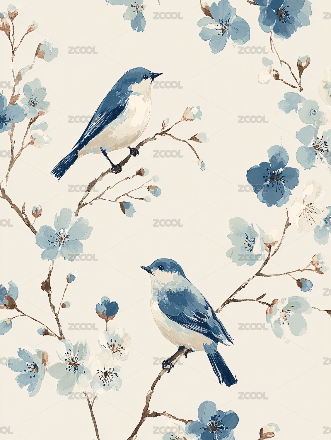 鸟类,水彩,植物,叶子,花卉,壁纸,印花,图案,潮流,时尚