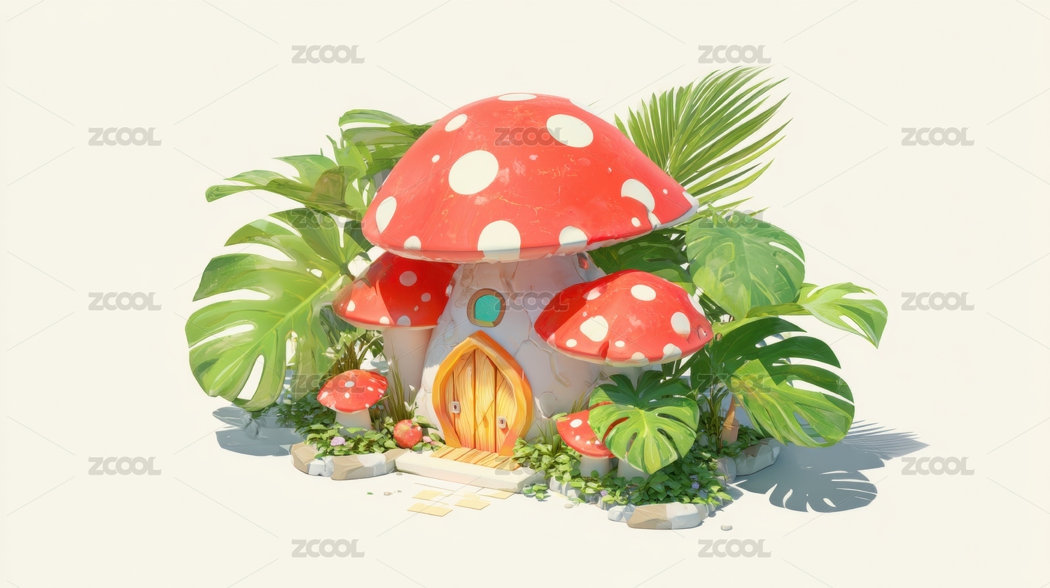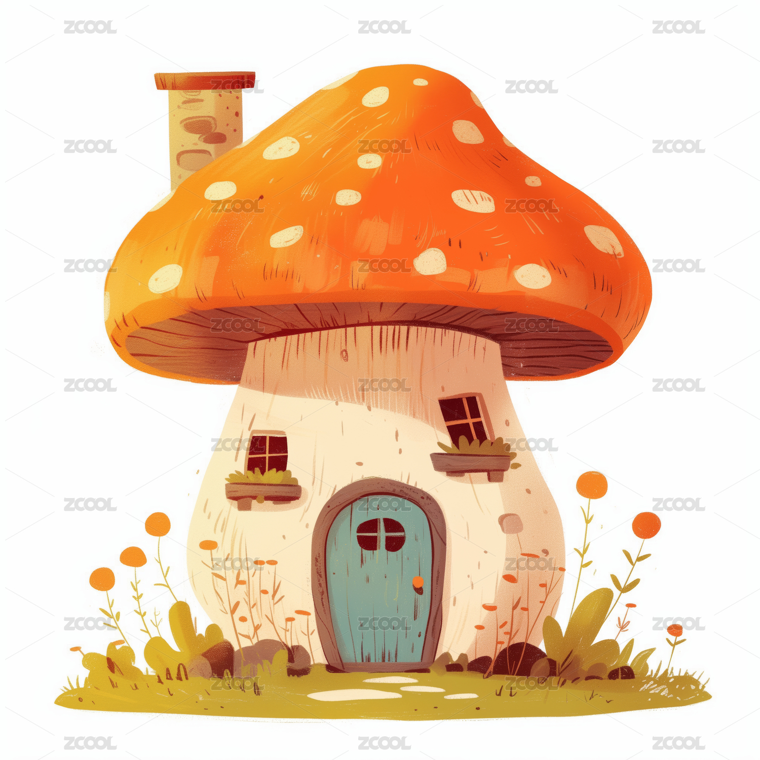 两只兔子的橙色蘑菇屋和粉色小蘑菇
