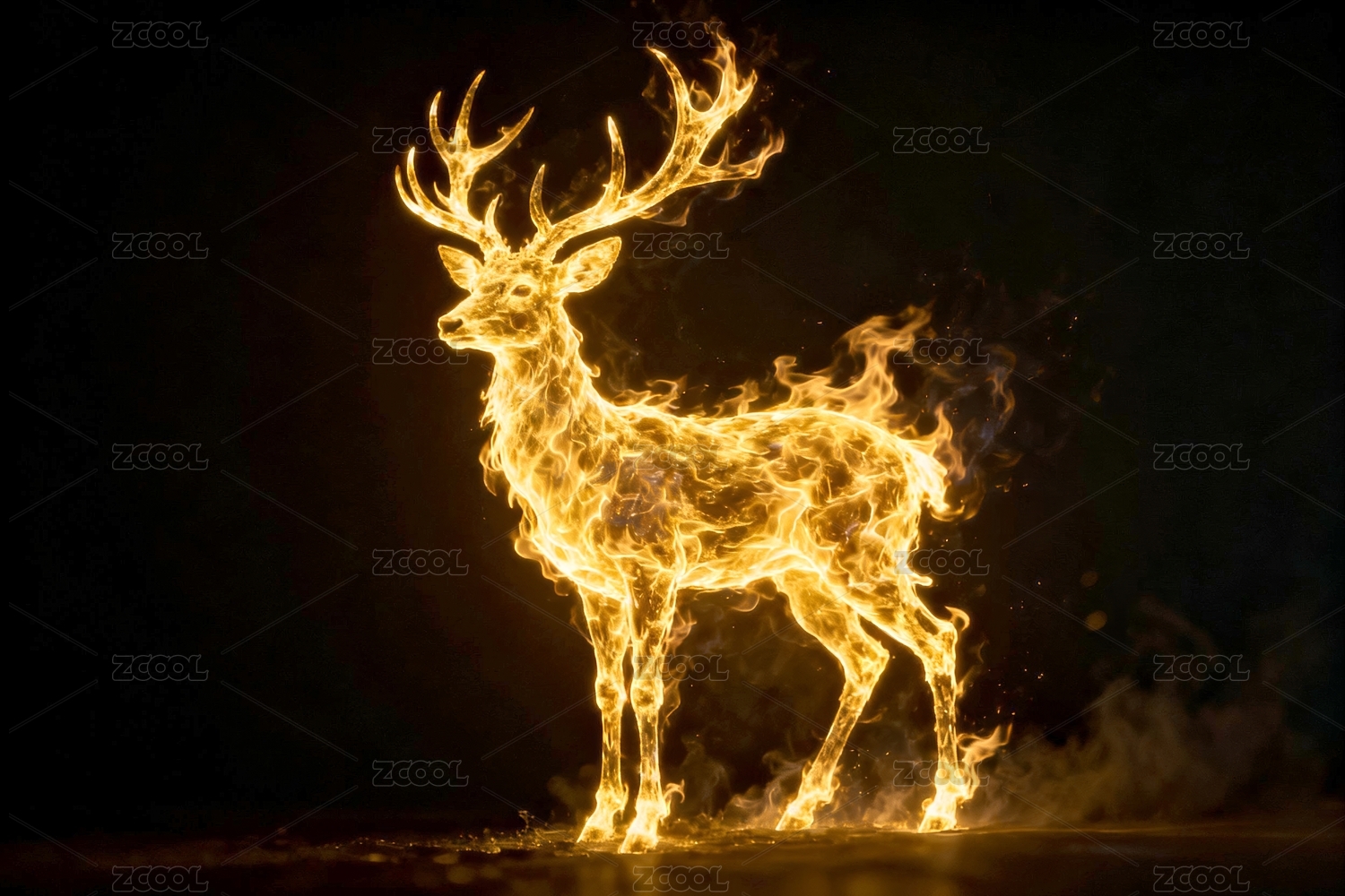 火焰,鹿,金色,光影,动物,艺术,抽象,梦幻,神秘,能量