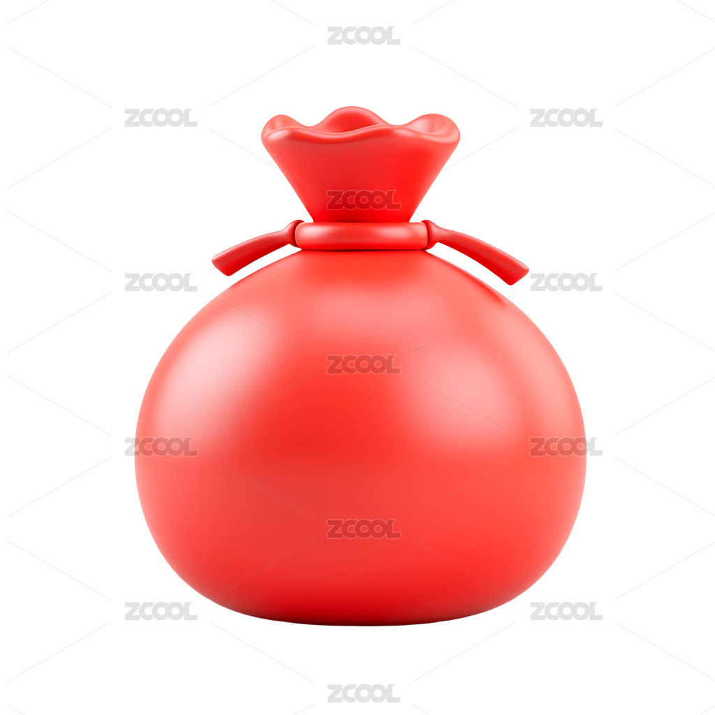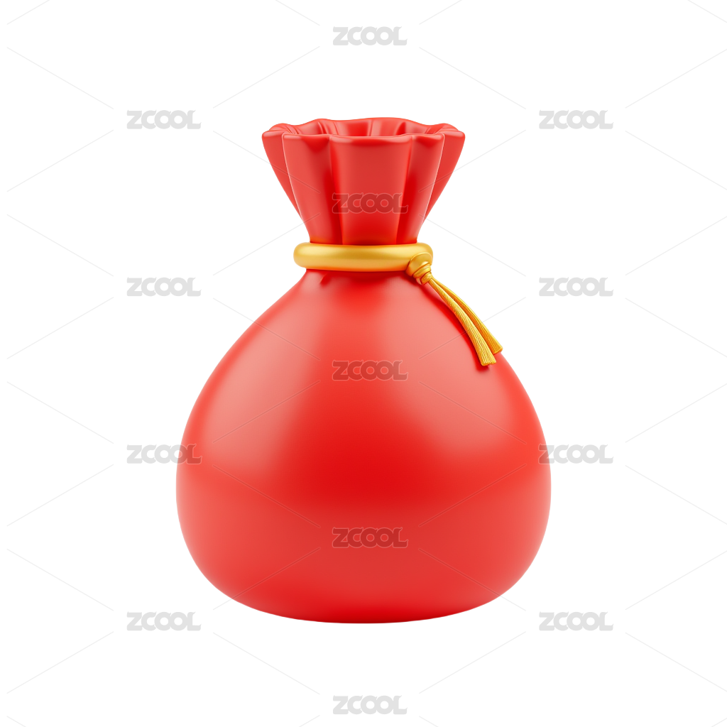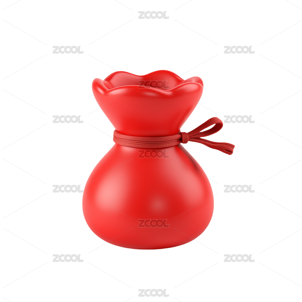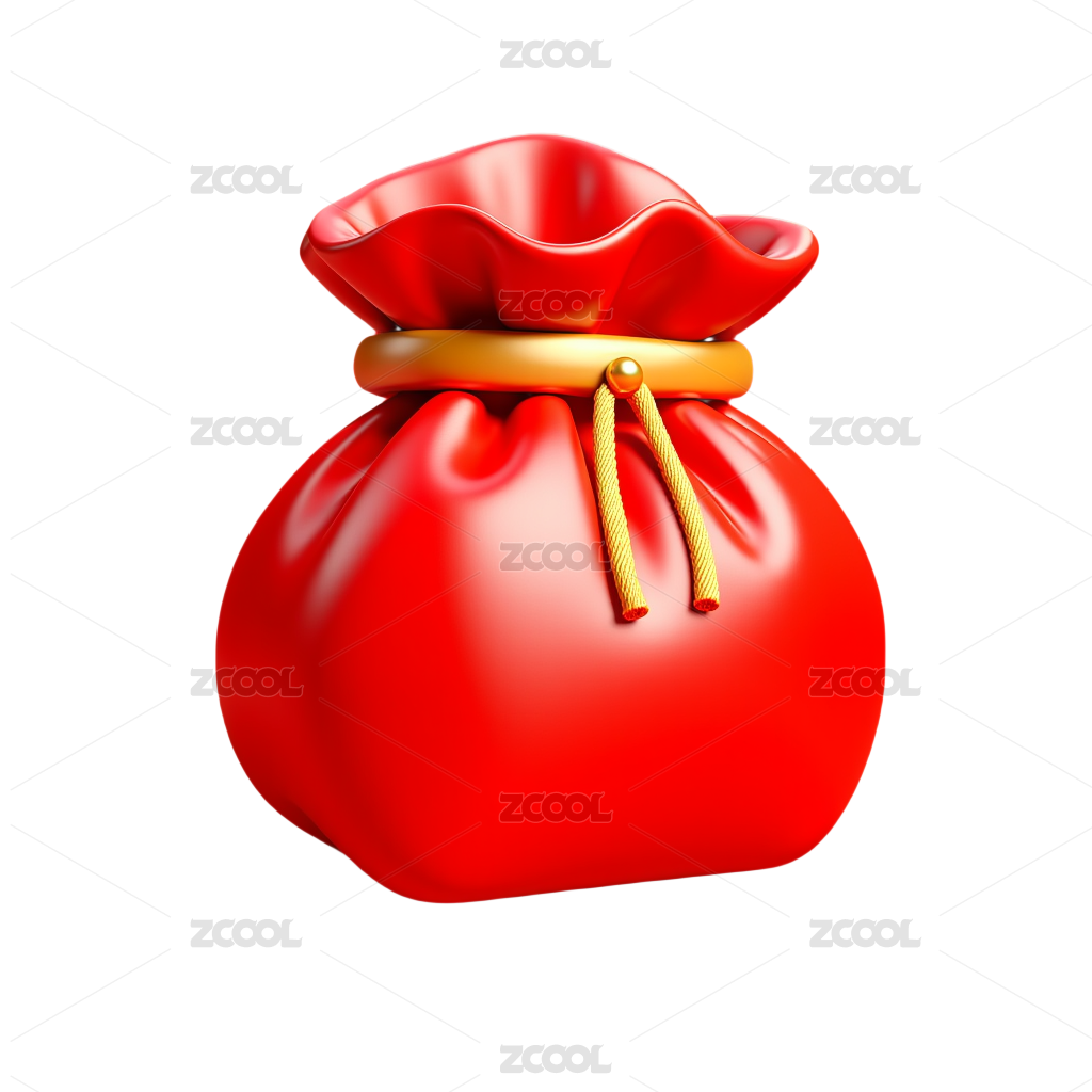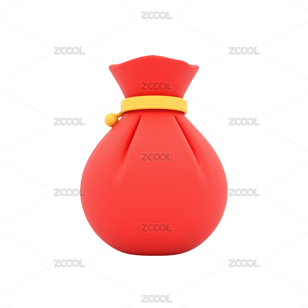 白背景上放着扎口的红钱袋