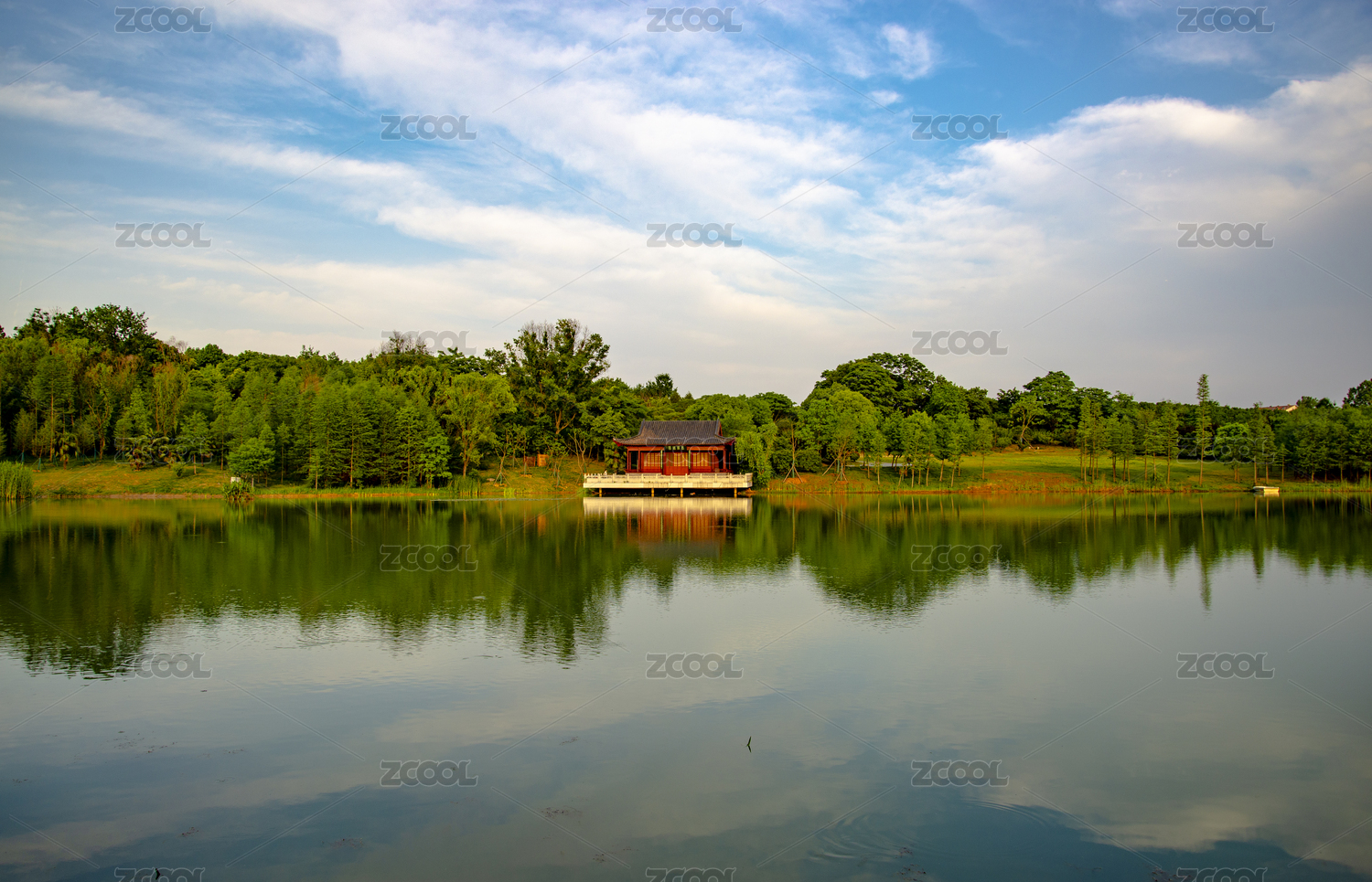 湖畔中式景致风光如画