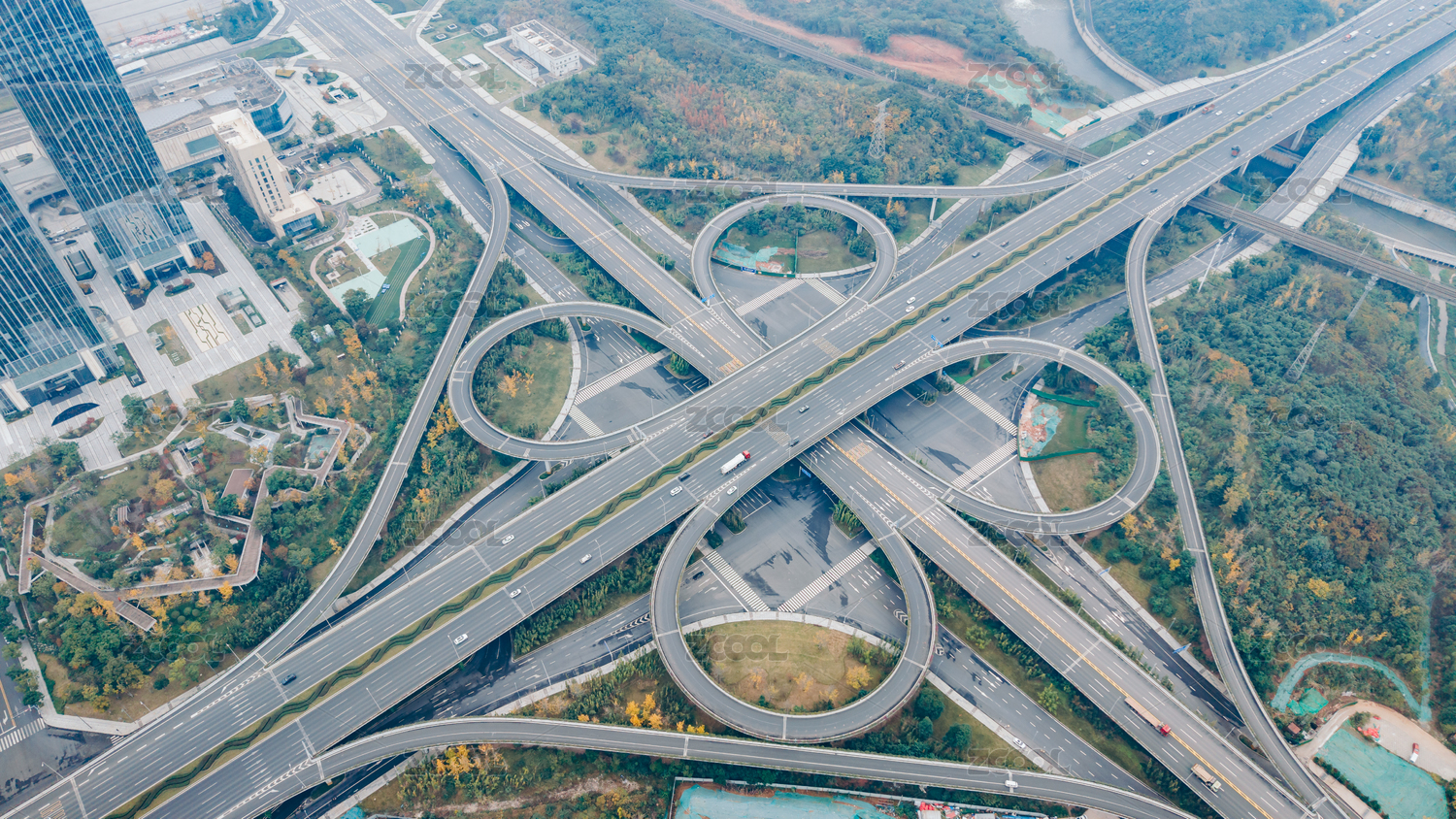 成都,城市风光,风光,航拍,天府大道,四川,天府新区,道路,立交桥,鸟瞰
