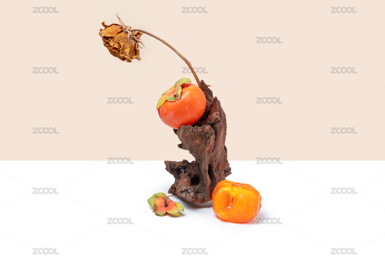 新鲜柿子和晒干的柿子