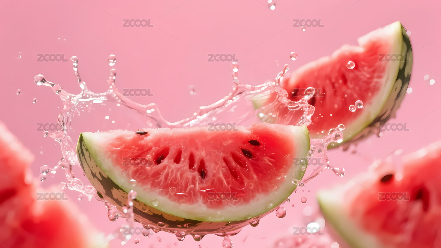 西瓜,切片,水果,黄色,背景,闪耀,多汁,水滴