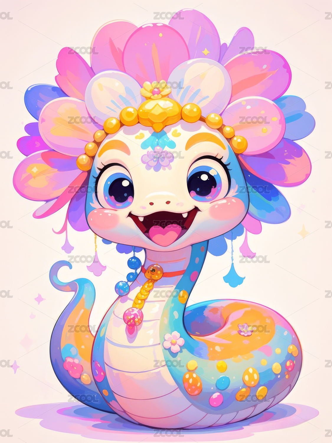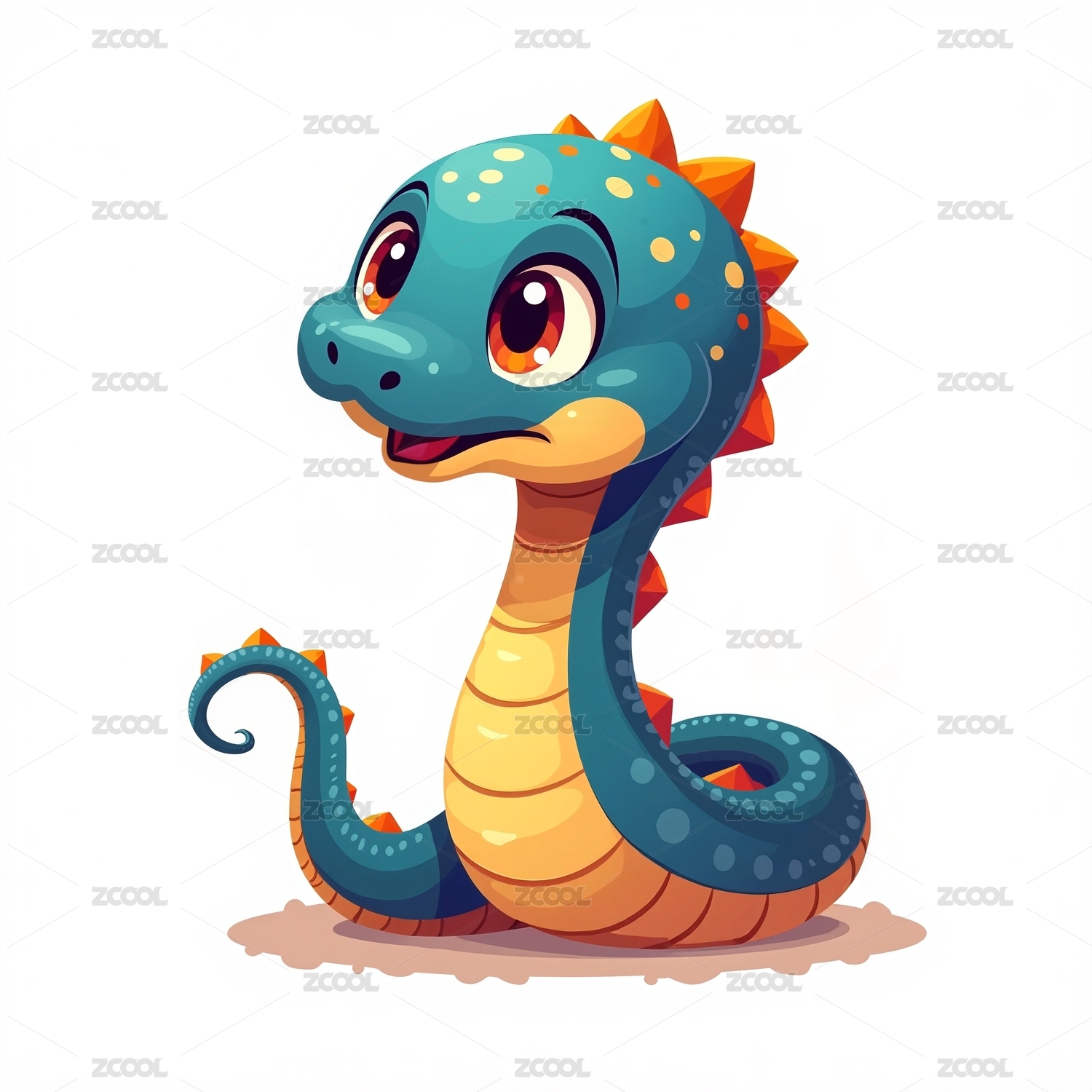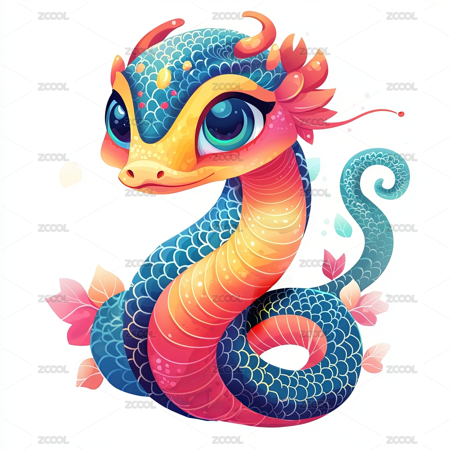 白底上可爱的橙红色的卡通蛇年生肖IP形象