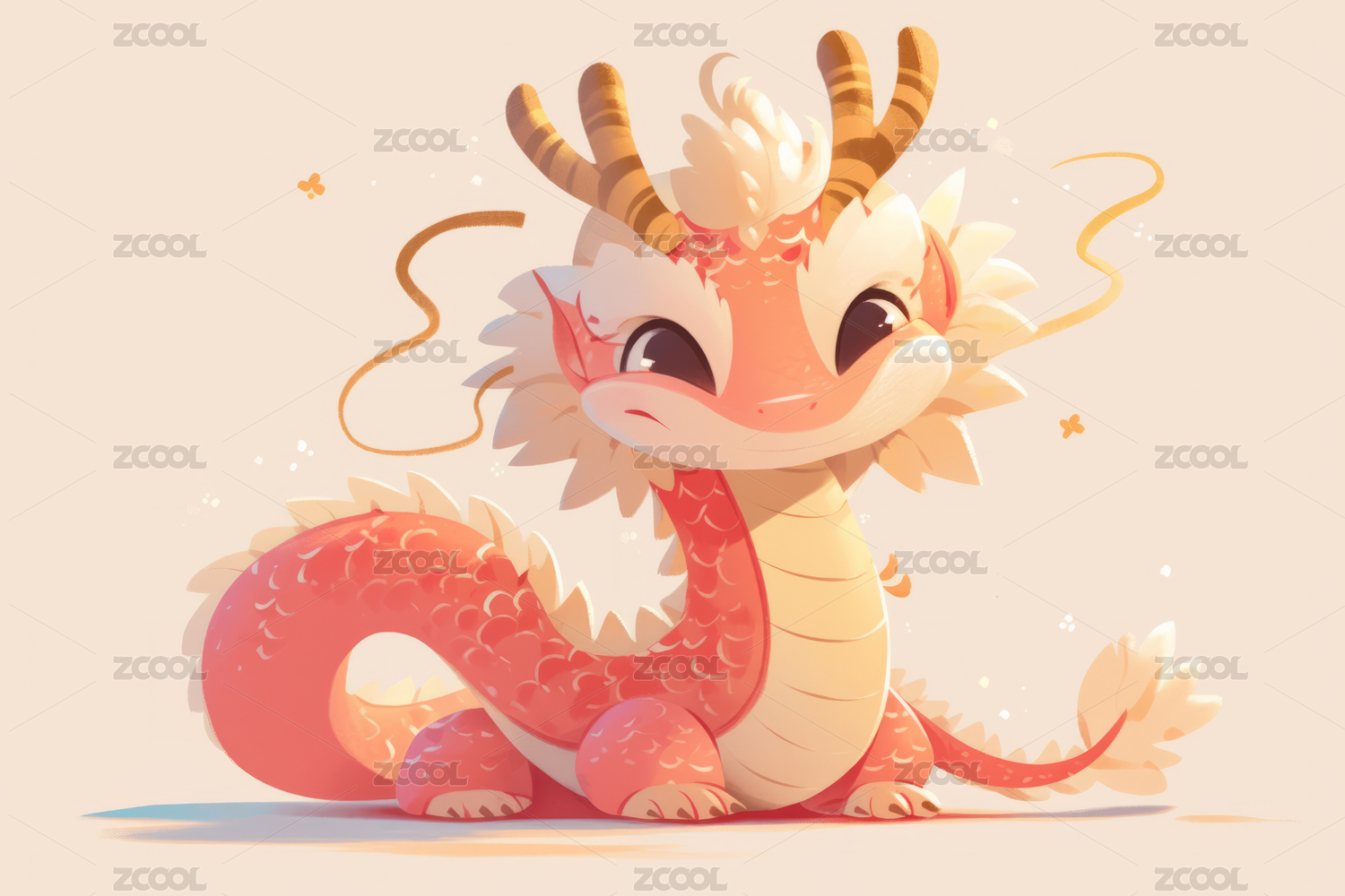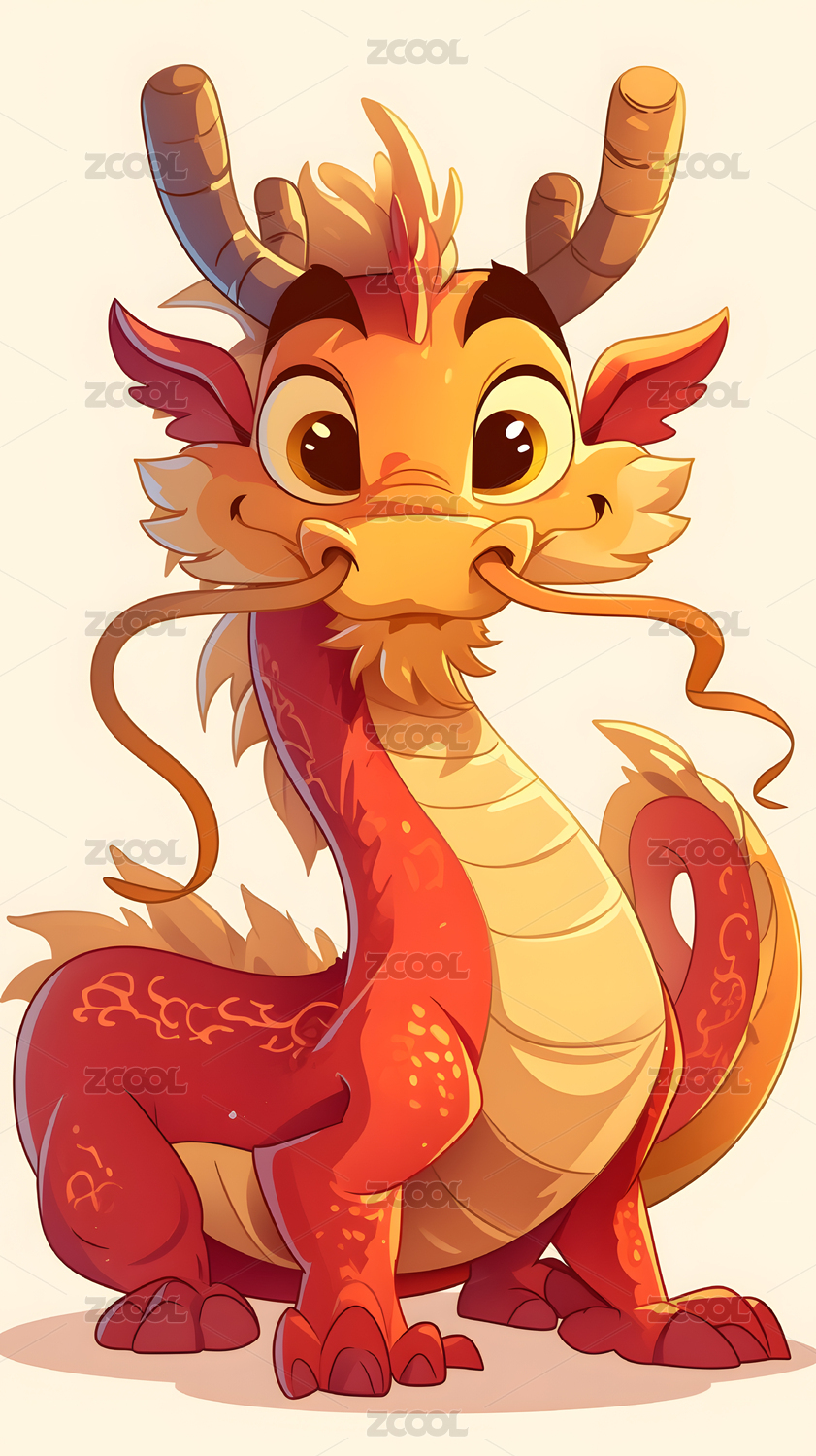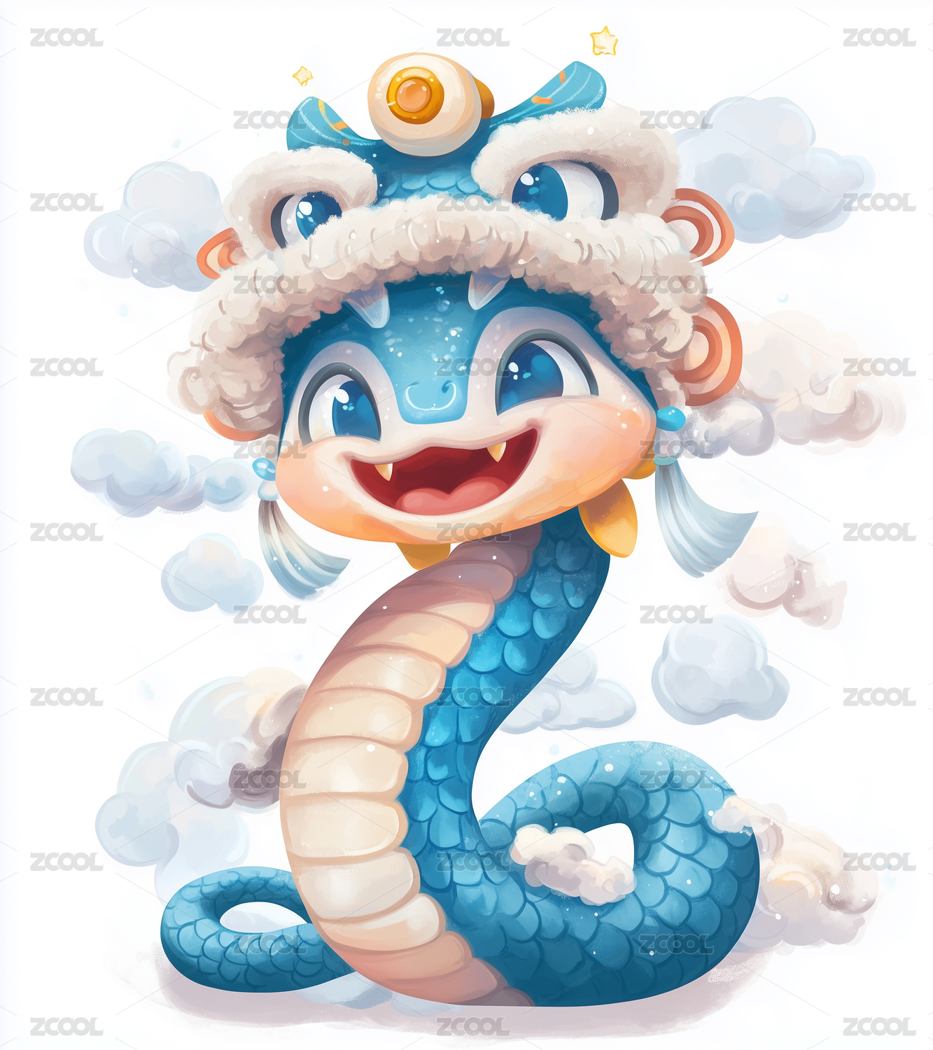 白底上可爱的橙红色的卡通蛇年生肖IP形象