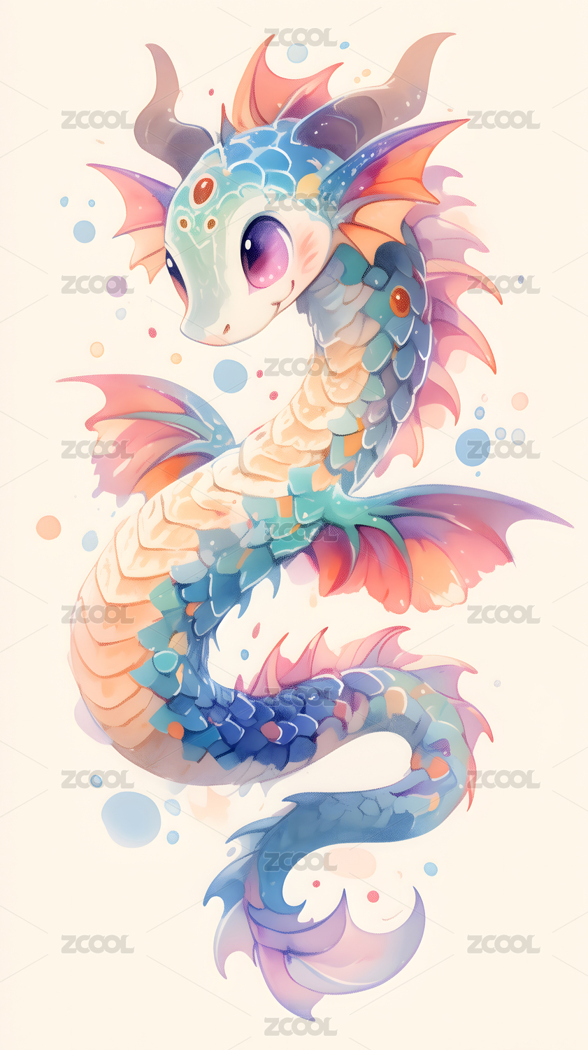 可爱,卡通,动物,插画,艺术,萌宠,蓝色,小龙,壁纸,橙色