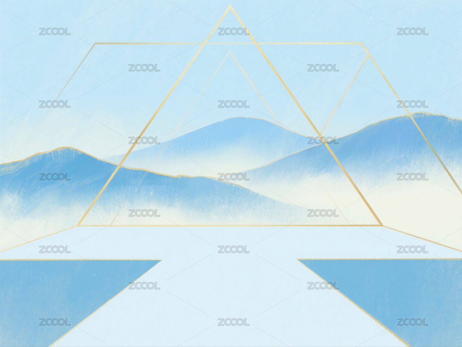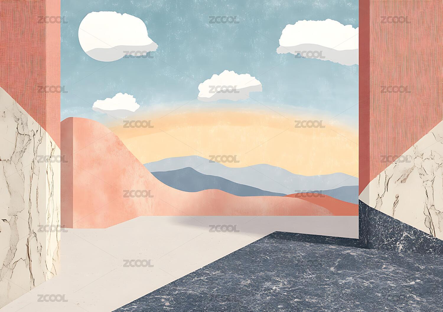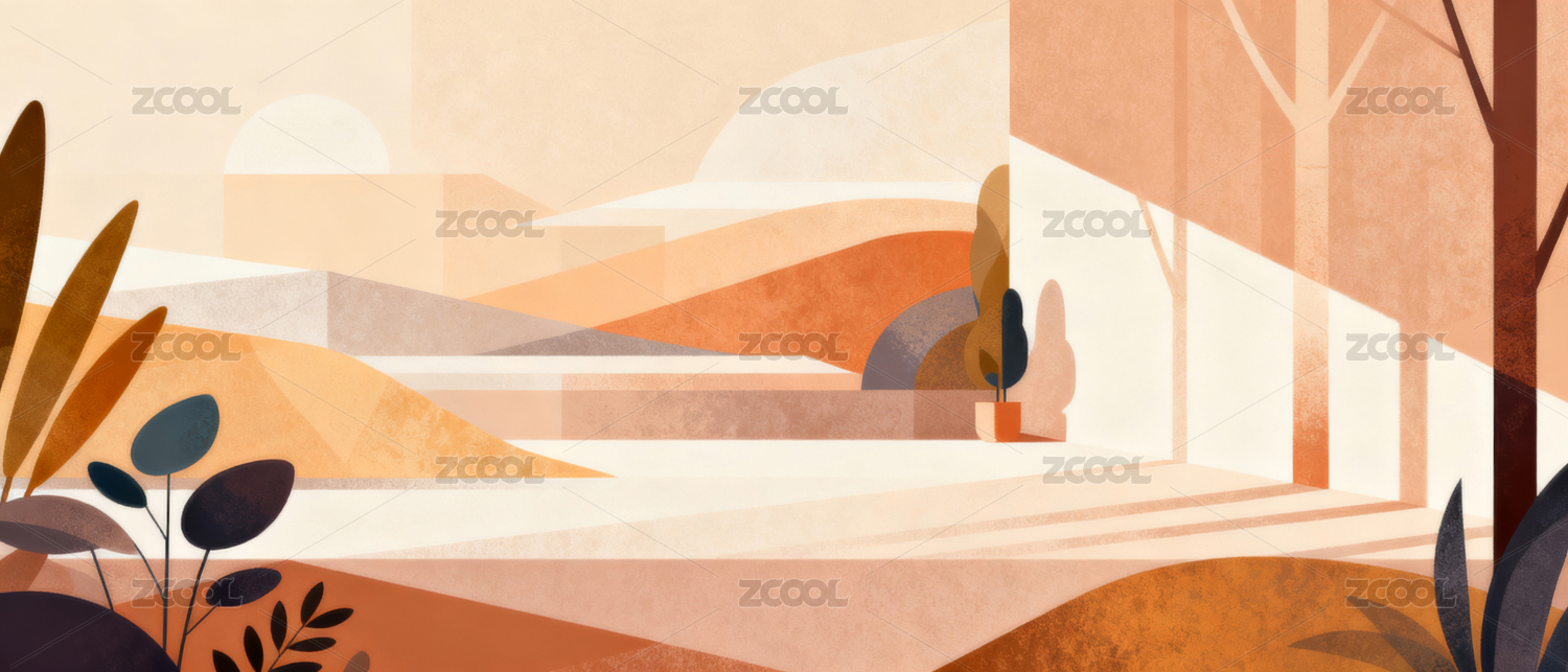 抽象几何形状的简约日落景观