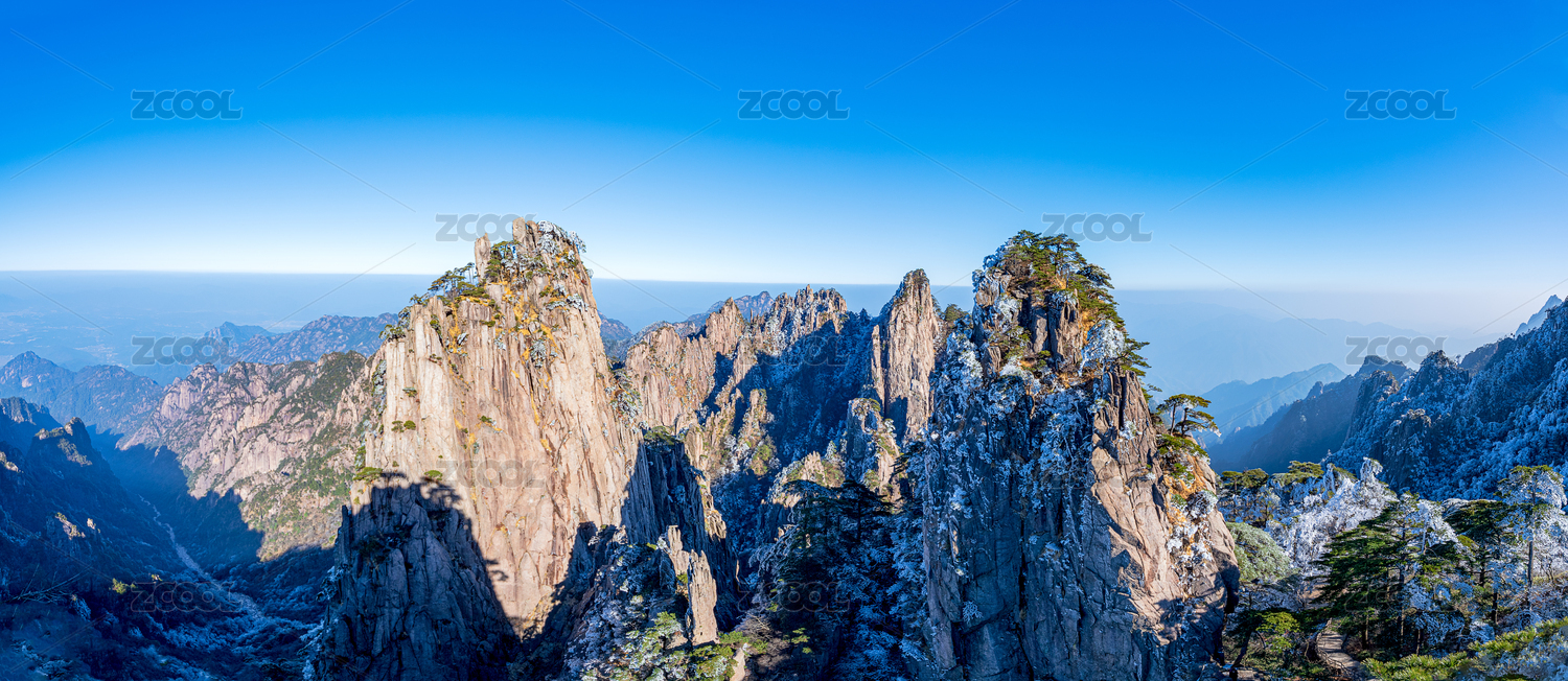 中国安徽黄山风景区冬季始信峰全景风光