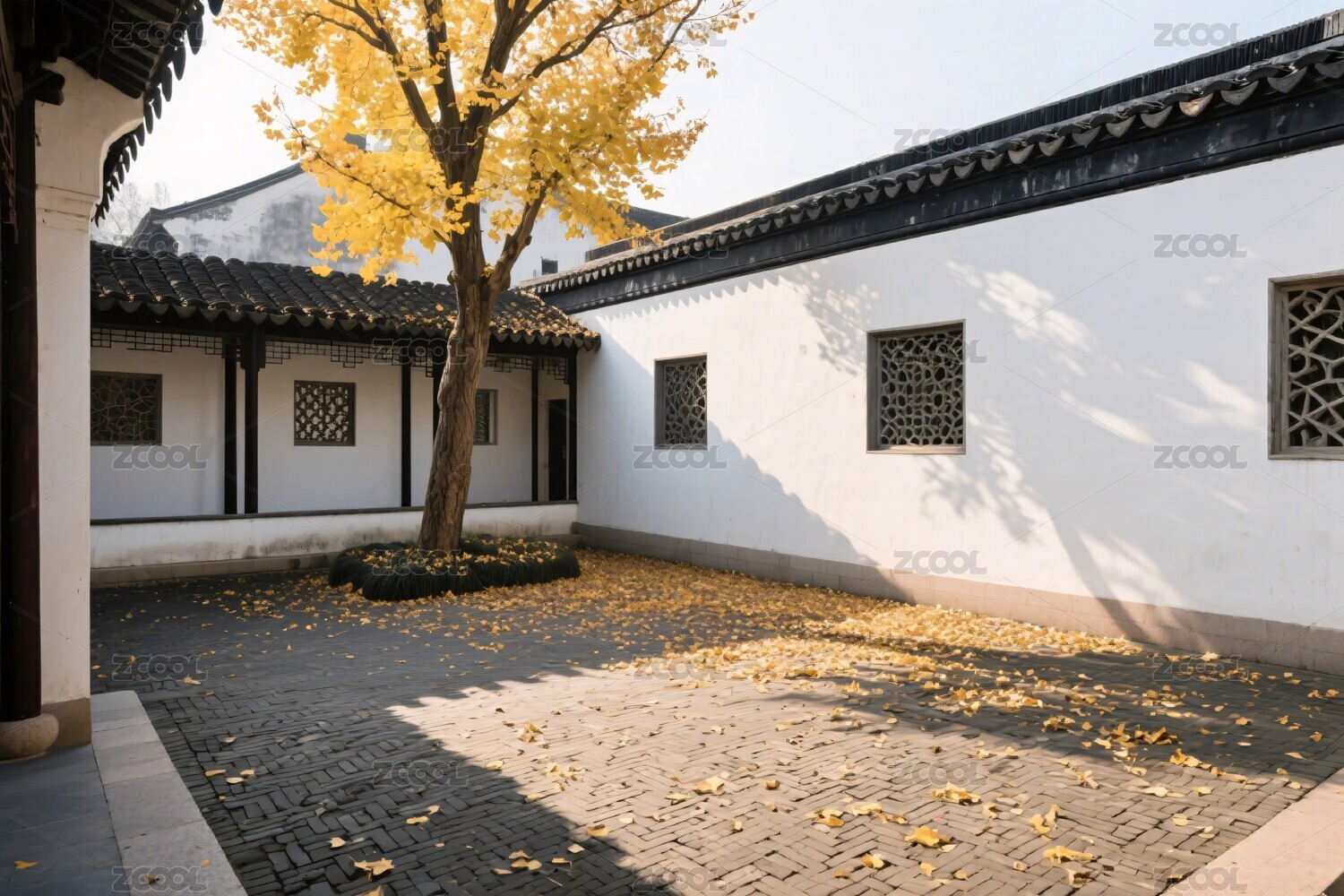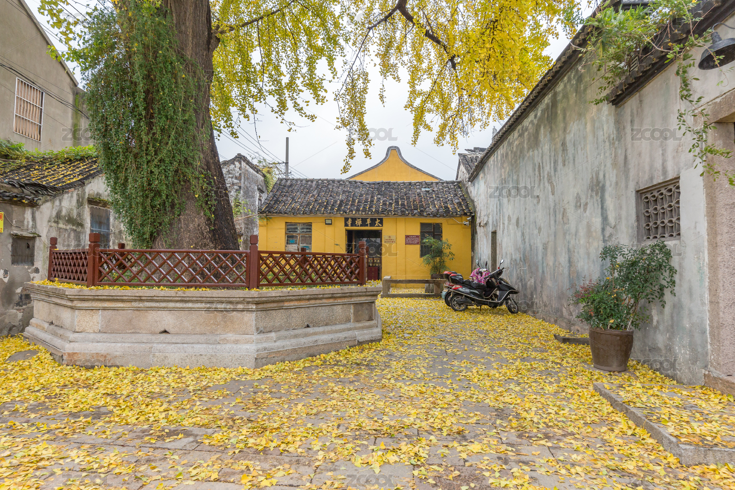 江苏省盐城市大纵湖银杏叶园林古建筑环境