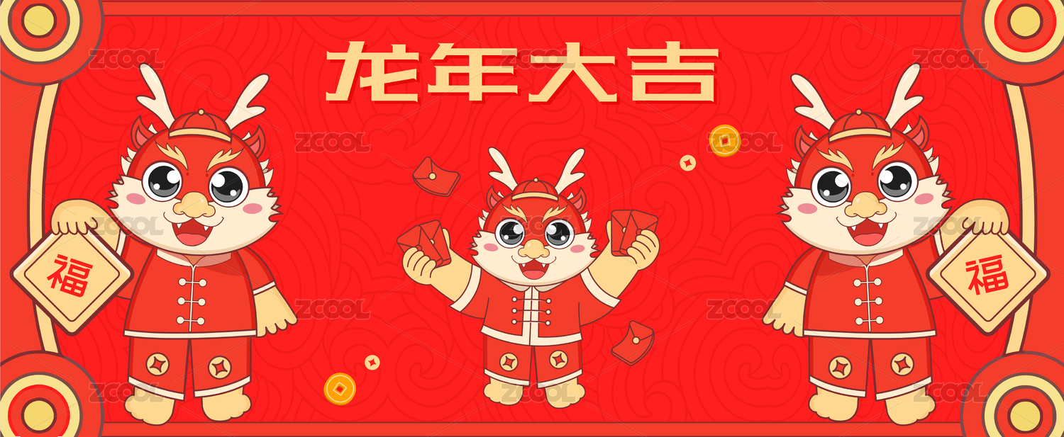 龙年卡通 龙年吉祥物 龙年国潮插画 红包