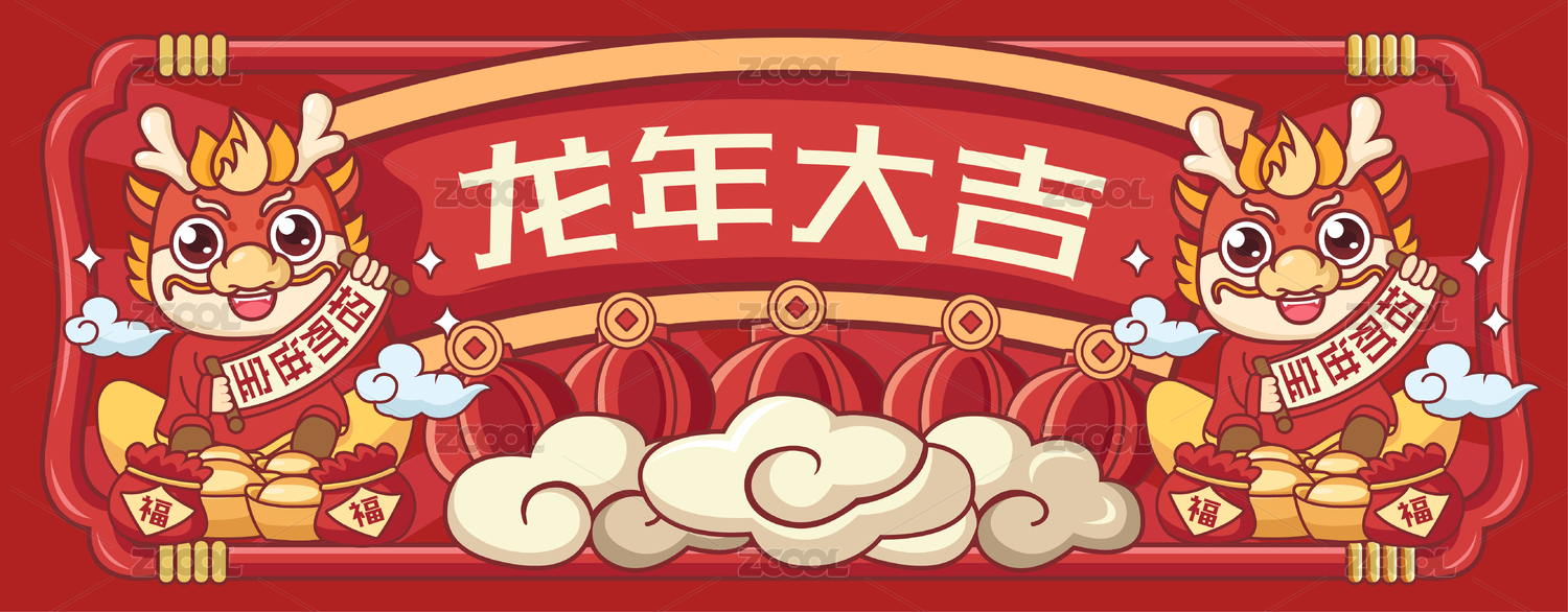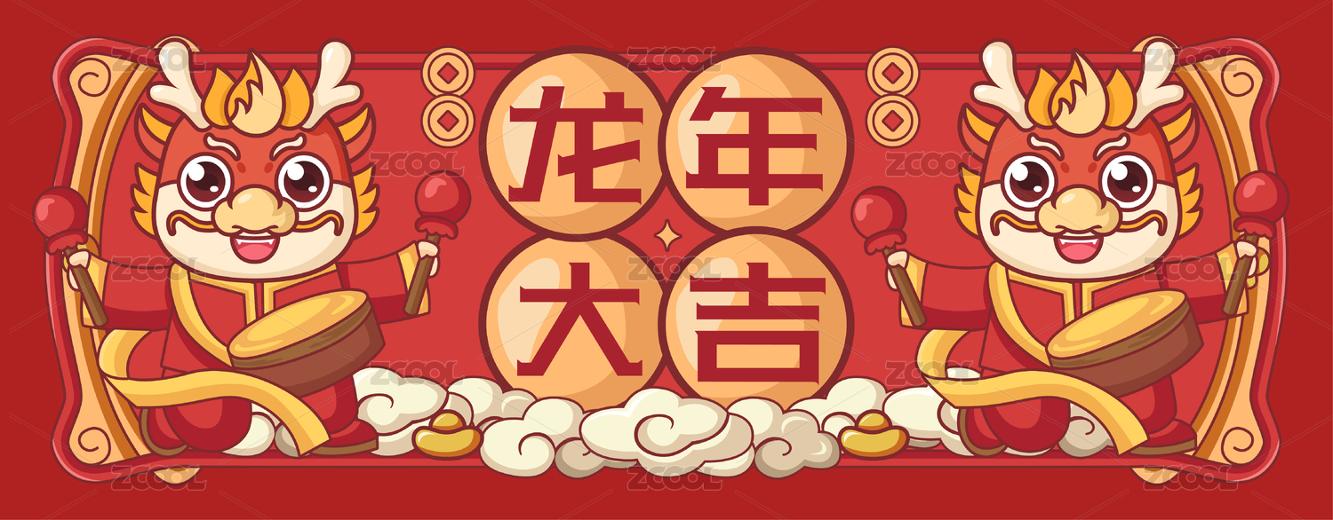 龙年卡通 龙年吉祥物 龙年大吉国潮插画