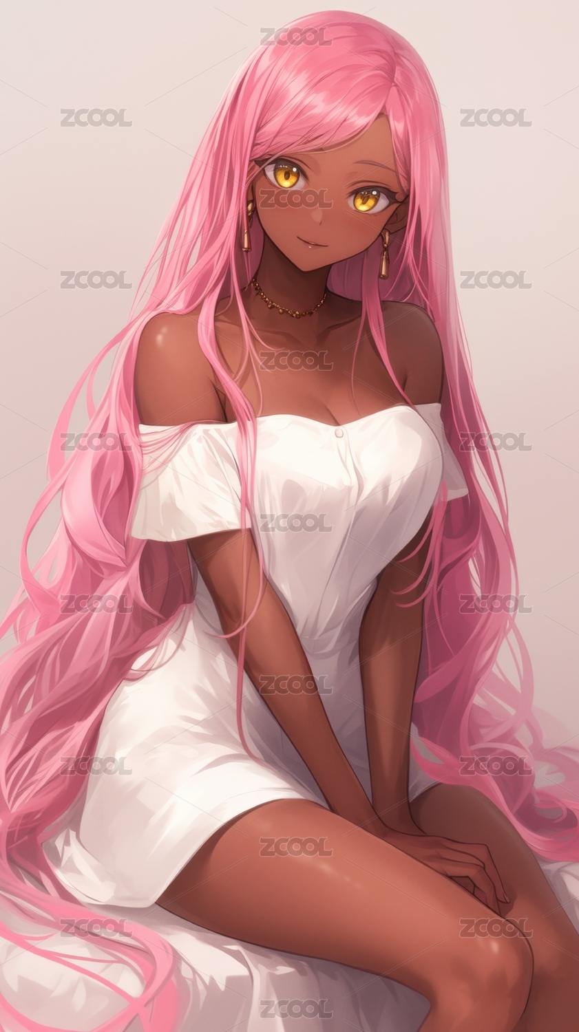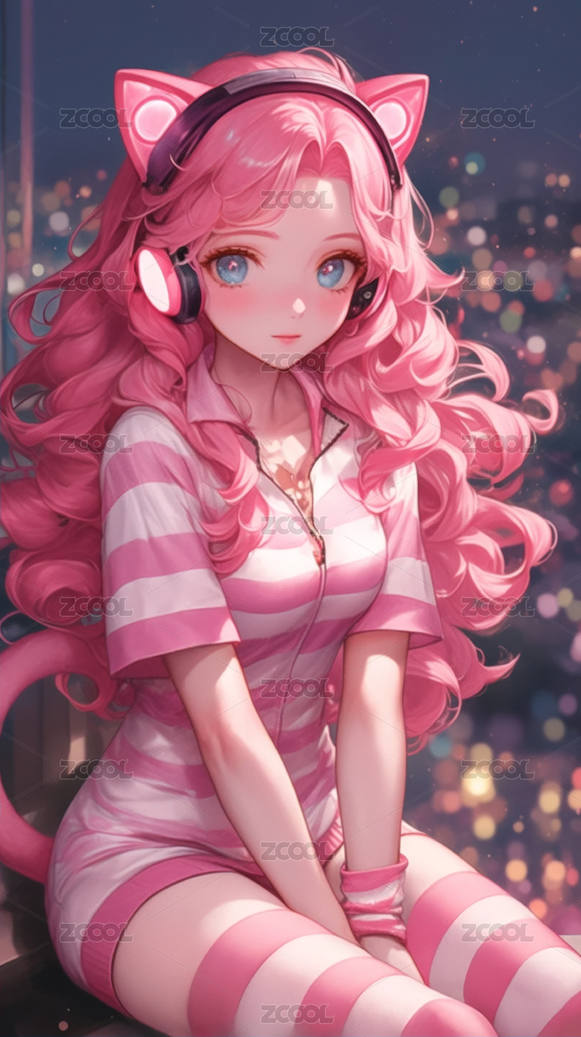 穿萝莉裙的粉色头发蓝天白云时光二次元少女