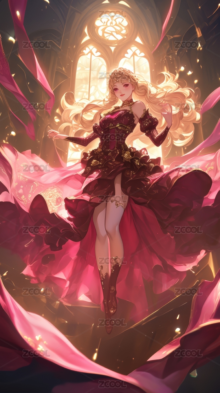 女孩,美女,蓬蓬裙,短裙,束腰,二次元,动漫,插画,绘画,紫色