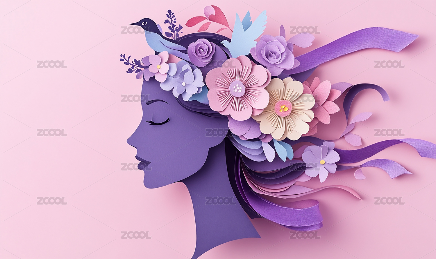 女性肖像剪纸装饰插画
