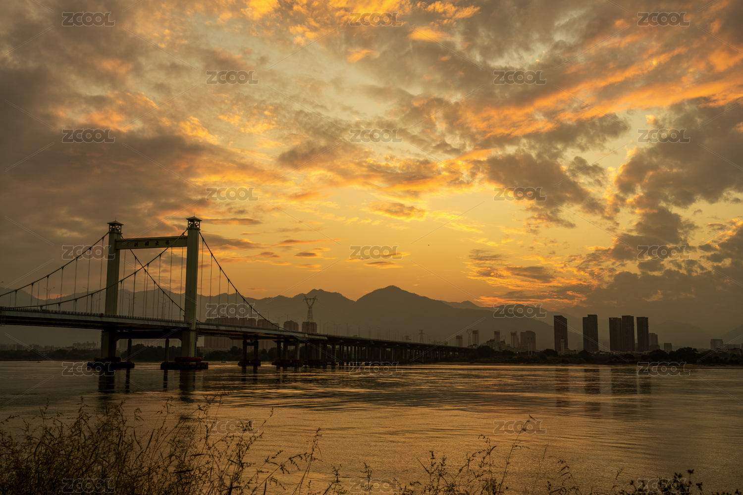 杭州,无人,建筑,户外,天空,日落,水,之江大桥,钱塘江,桥