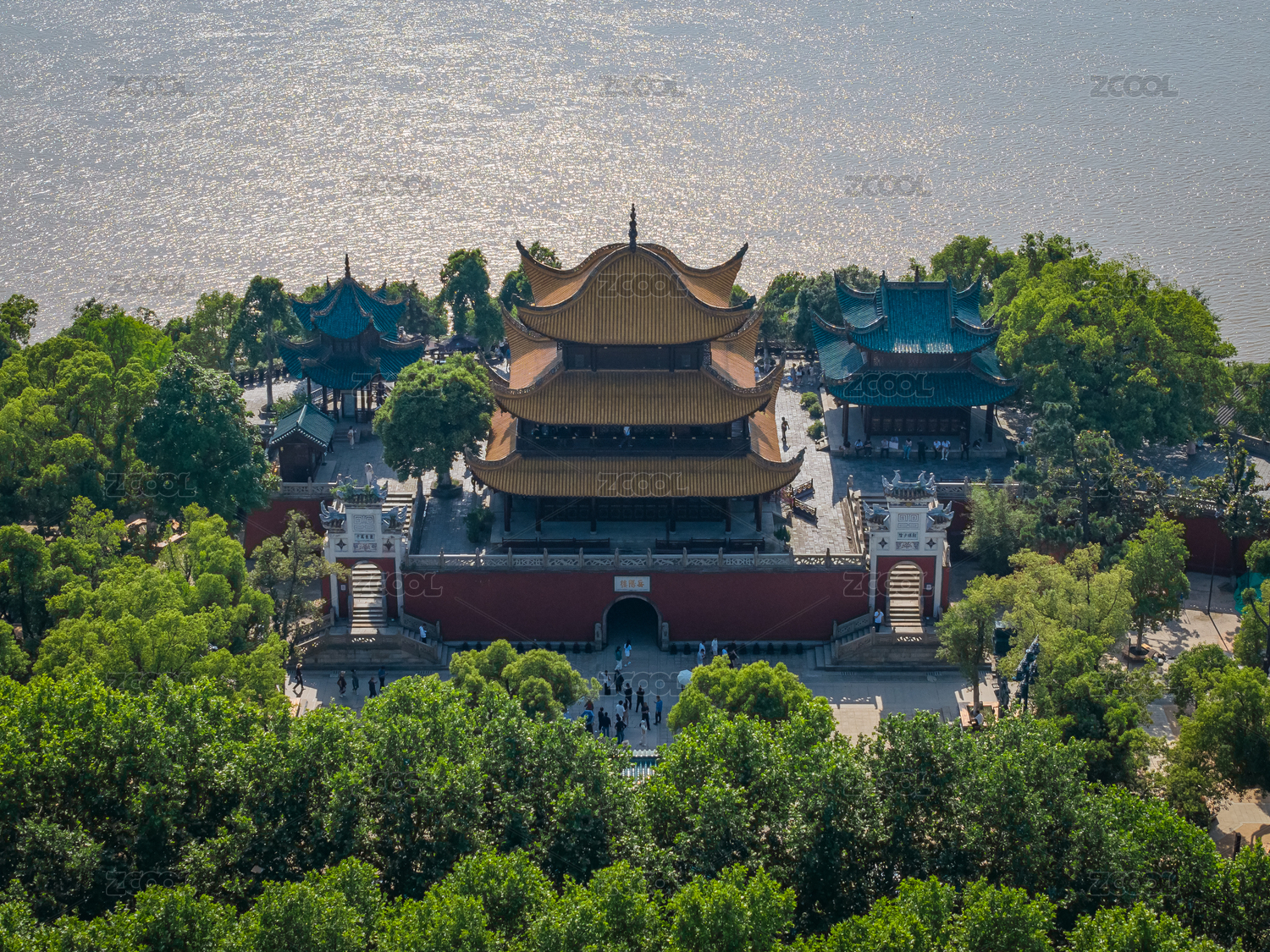 湖南岳阳岳阳楼古建筑与城市天际线航拍